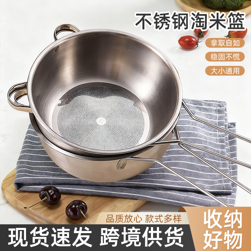 ステンレス製水切りかご キッチン用米とぎざる 多機能野菜・果物洗い網 多用途かご 濾過網