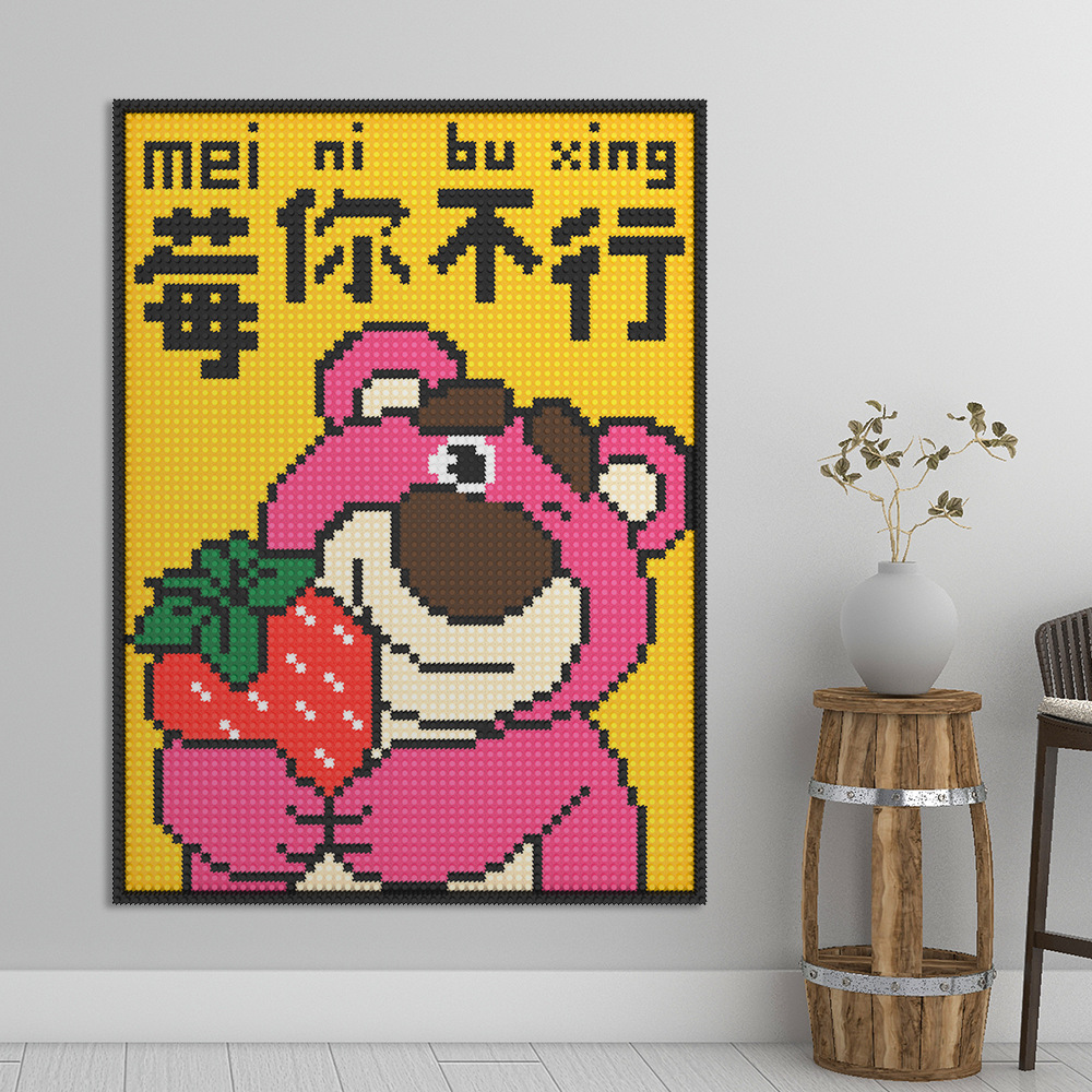 特大サイズのいちご熊積み木子供の知育は小さな粒子のおもちゃの女の子の誕生日プレゼントの立体的な置物をつづり合わせます。