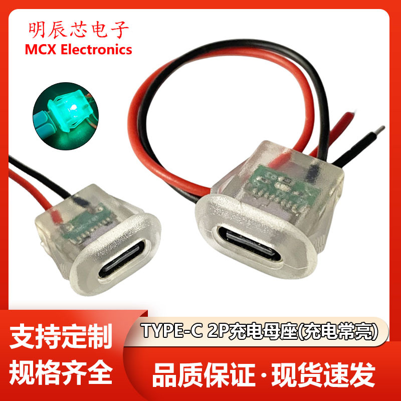 TYPE-C母座2pバックル注入USB C母頭typec溶接線防水透明ランプ付き電気スタンド充電口