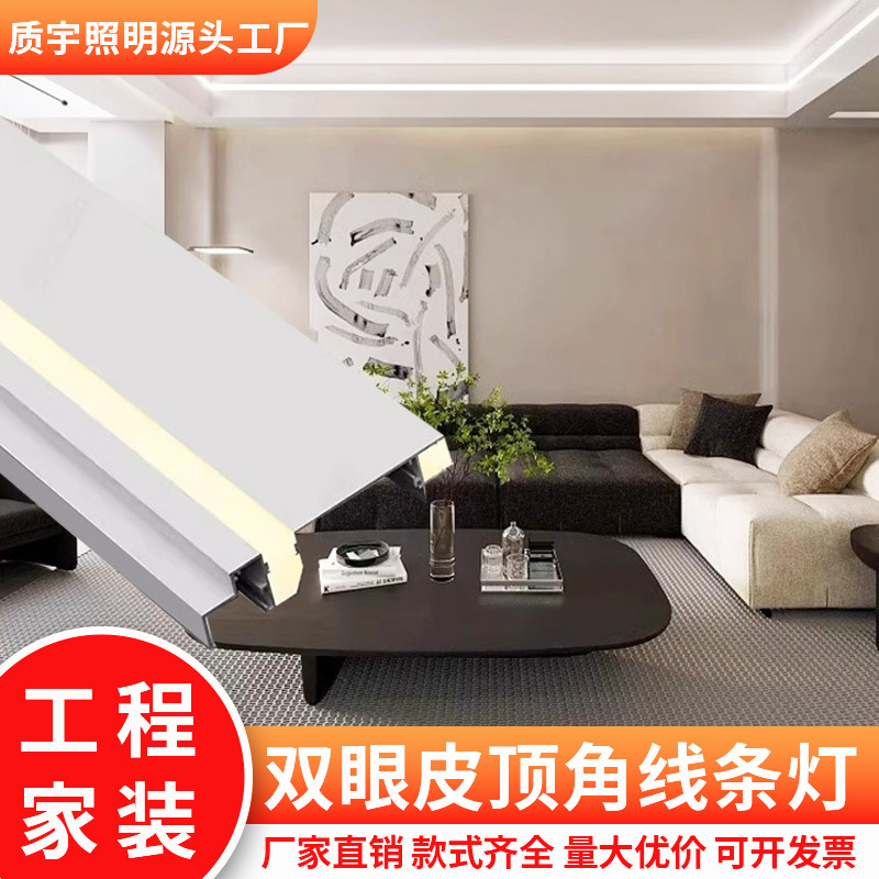 表面実装二重まぶたトップコーナーラインライトリビングルーム雰囲気フリーティールレスリニアライトスロットレスホームメインライトなしアンビエントライト