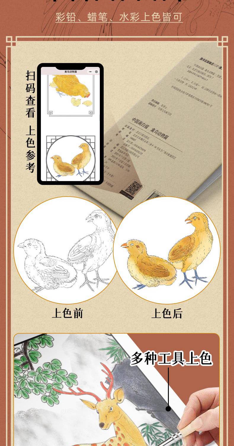 子供の中国画の白画の基礎の入門編は絵の冊の練習紙の人物の動物の植物の原稿をまねて色の本を塗ります。