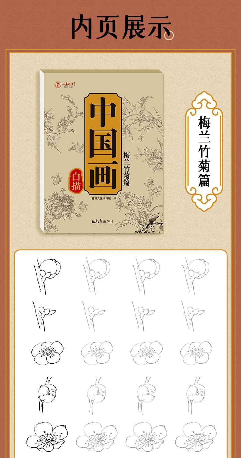 中国画白描本零基礎描本絵画伝統初学入門山水人物花卉模写絵本