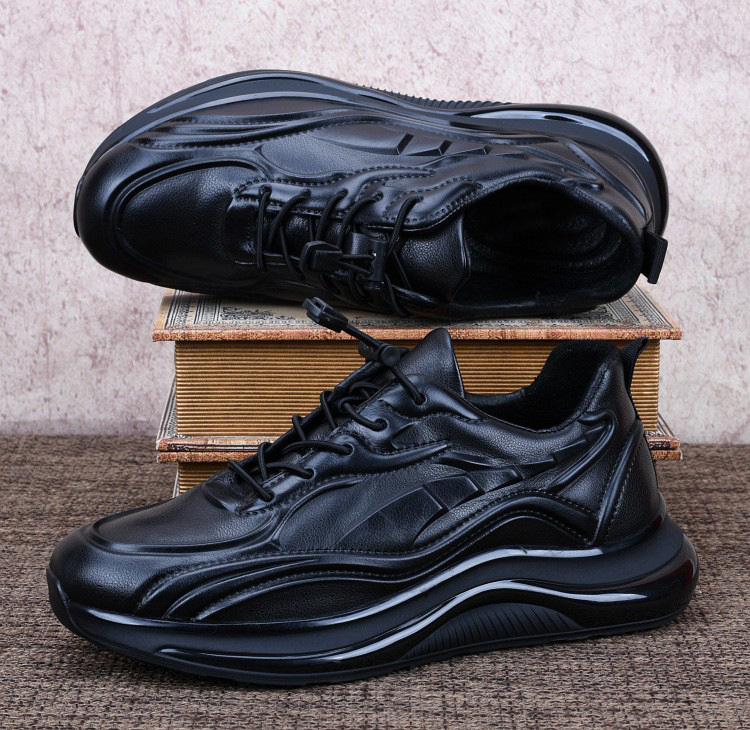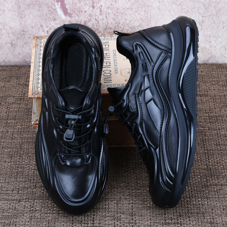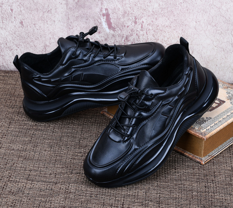 秋冬メンズシューズ ブラック厚底シューズ トレンド万能スポーツシューズ 牛革メンズシューズ 通気性 新作カジュアルシューズ 卸売