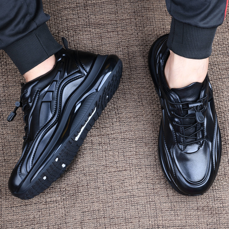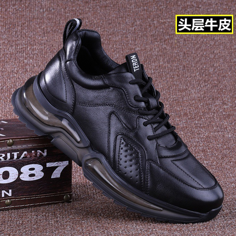 外国貿易向けメンズシューズ、本革(牛革一枚革)フルスポーツシューズ、メンズ身長アップ厚底超軽量レースアップカジュアルシューズ、ランニングシューズ