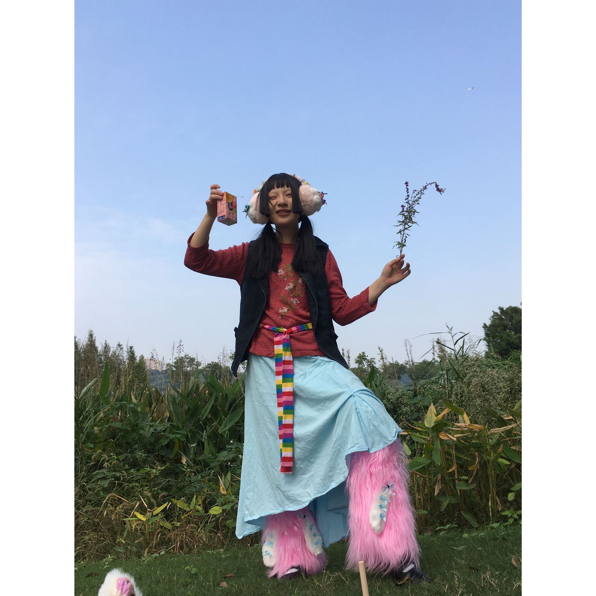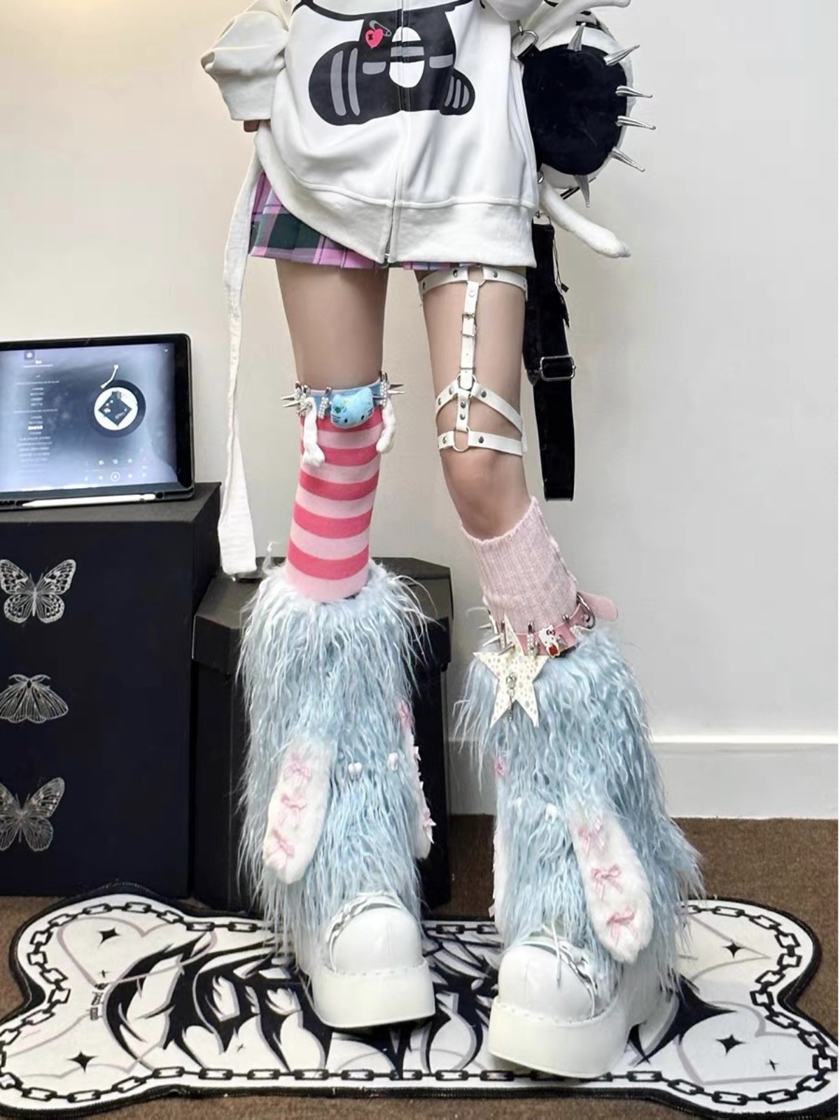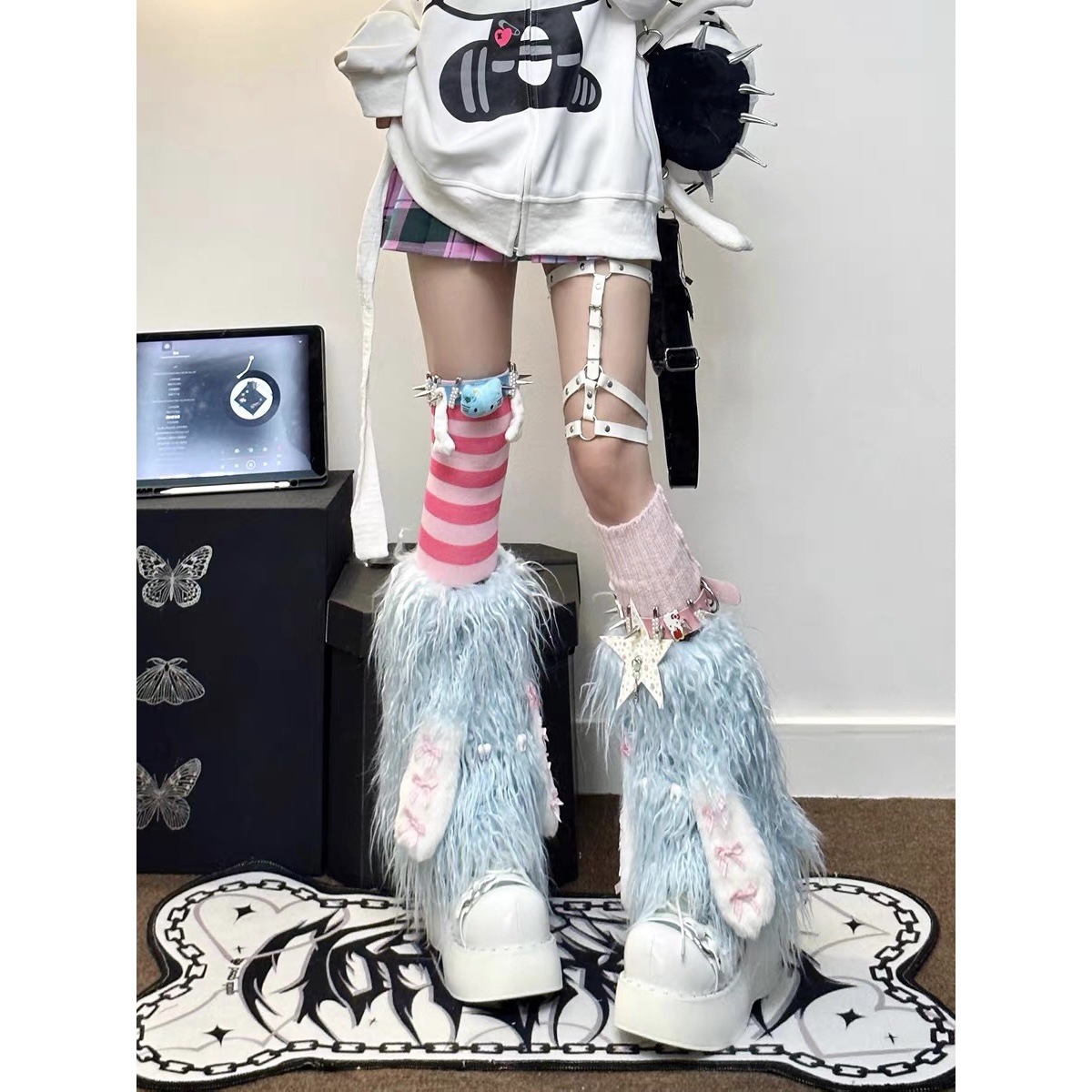 自制y2k辣妹小腿毛毛皮扣袜套朋克仿皮草腿套加绒亚文化堆堆袜