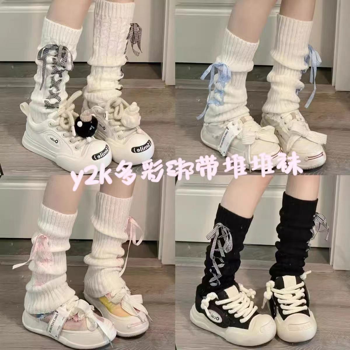 蝶ネクタイパイルニットソックス y2k ガールホワイトサブカルチャーホットガールスリムロリータかわいい
