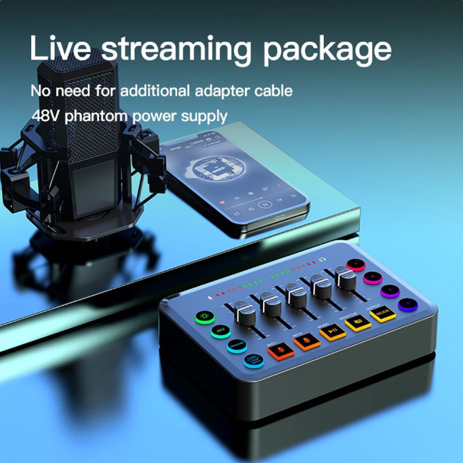 Amazon在庫あり 英語版サウンドカード ライブミキサー 歌K用補助光 Temu新型ノイズキャンセリングライブサウンドカード