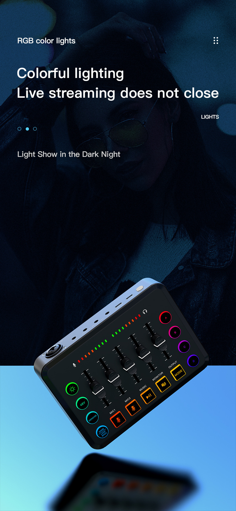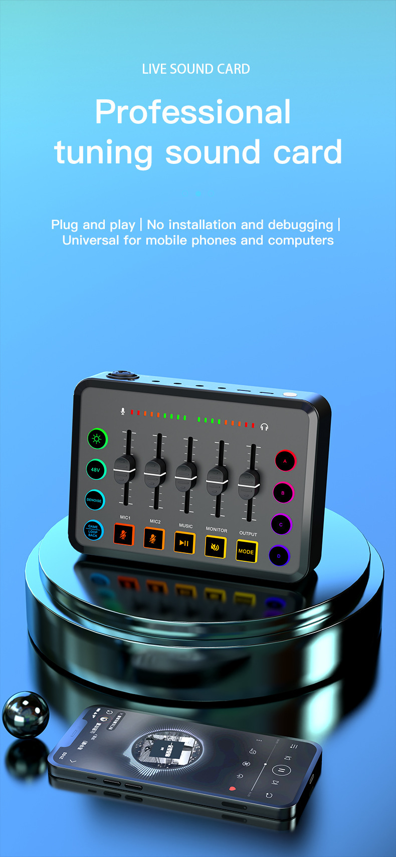 G1调音器TK游戏电脑声卡RGB灯光混音器电脑手机直播录音通用跨境