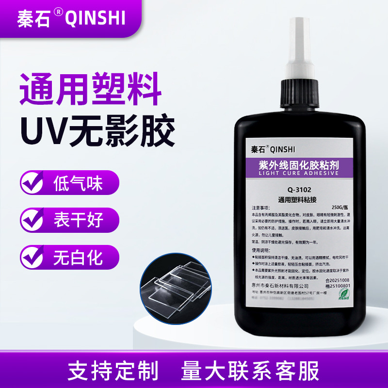 粘塑料uv胶pc/pvc/abs/ps亚克力专用无白化强力快干胶水无影胶