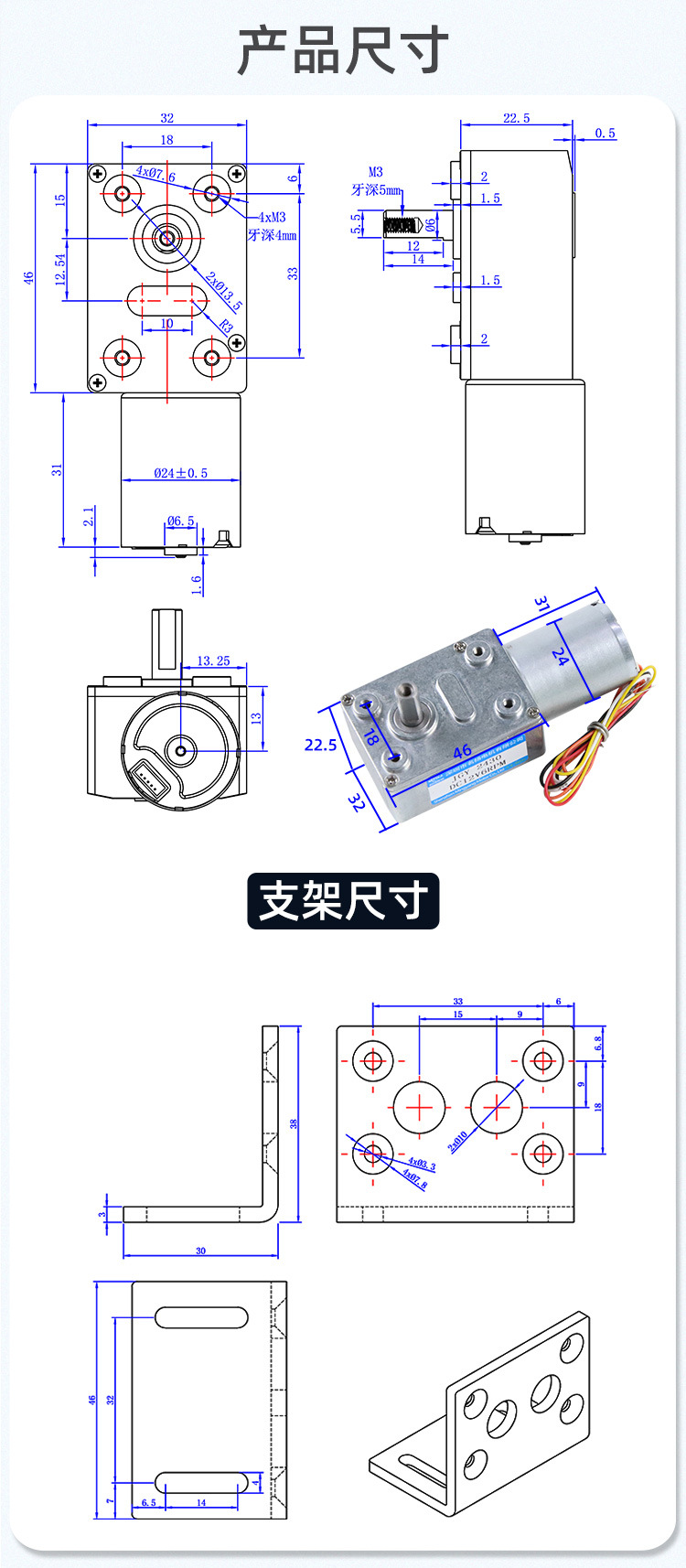 マイクロ直流減速モータ5840-31zy二軸ウォームギア低速12ボルト24v大トルク小モータ