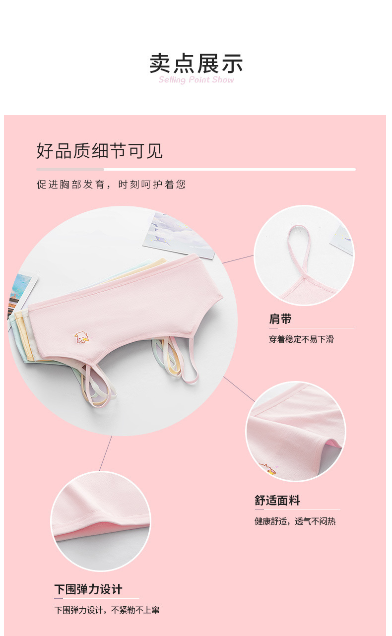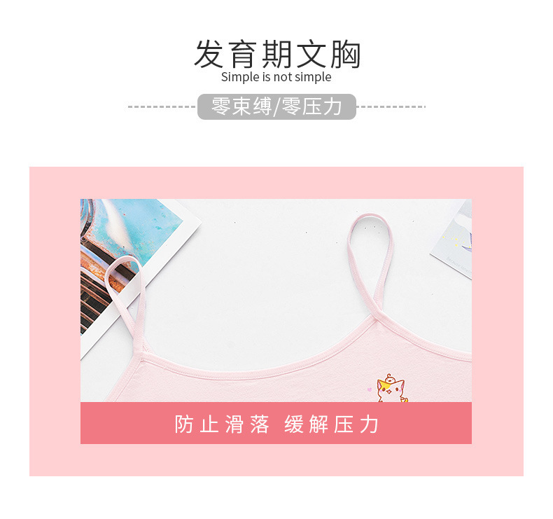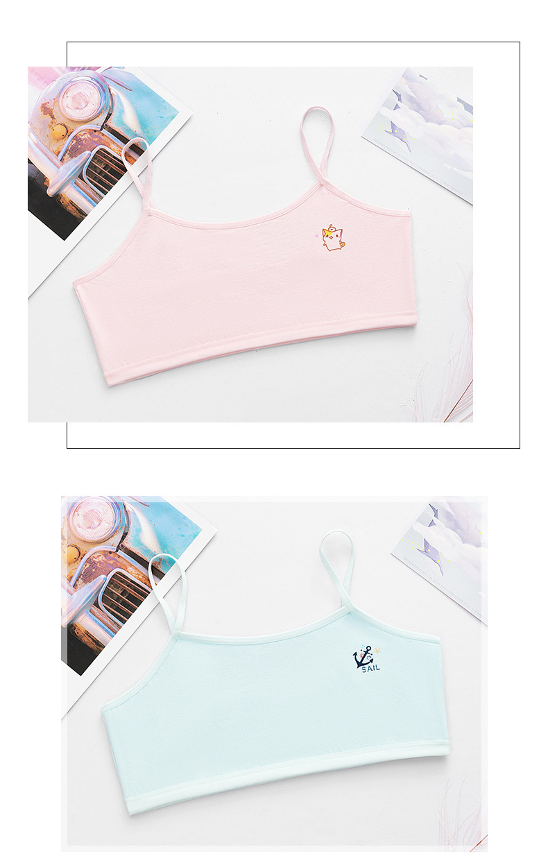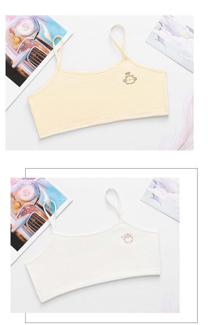 小学生女子向け下着、発育期ベスト、純綿通気性中学生向け膨らみ防止ブラジャー、純綿、ワイヤーなし