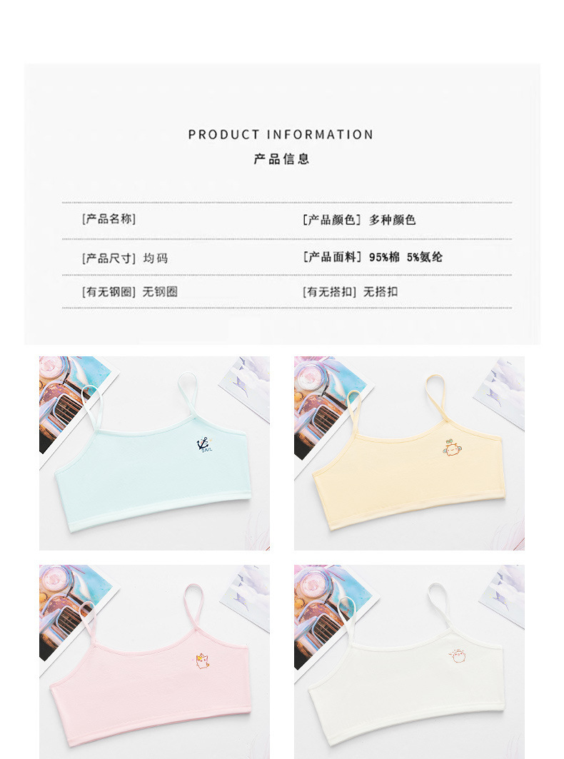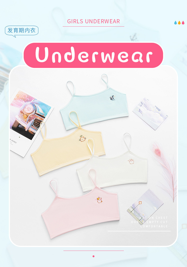 純綿の二重発育期の女の子のベストの4色のアニメの少女は胸の大きい子供の小学生の中学生の下着を拭きます。