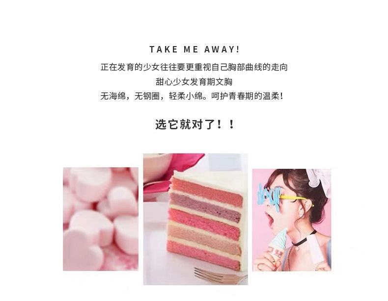 発育期の女性用ブラジャー、女の子用純綿ブラジャー、中学生・高校生用無地快適ベスト、胸パッド付き