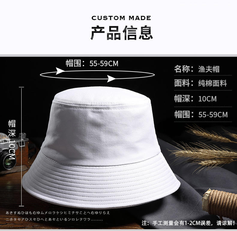 纯棉渔夫帽棒球帽,白色可以扎染
