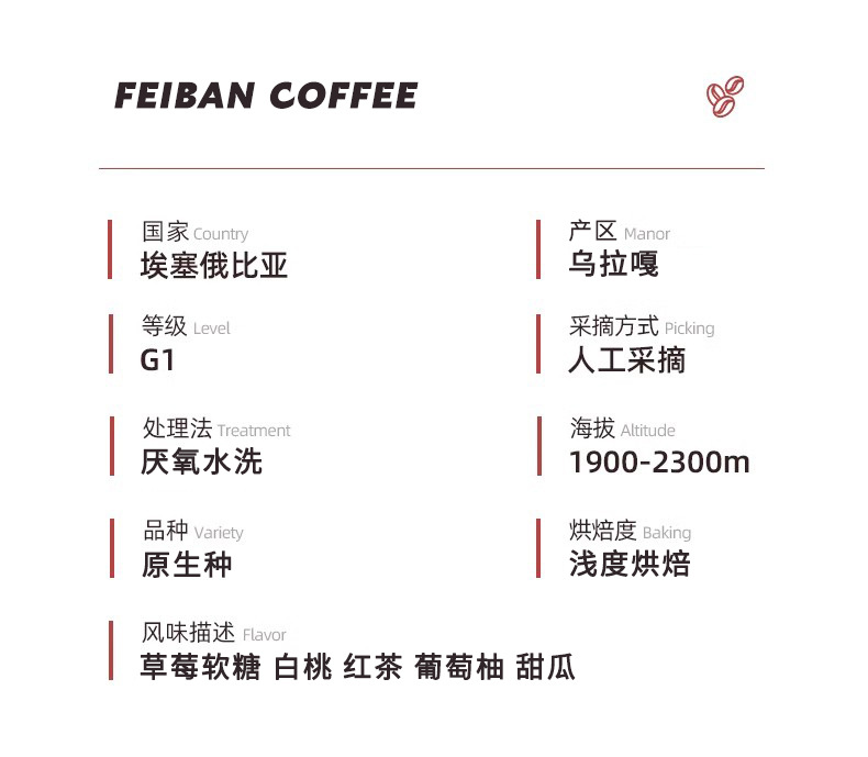 瑰夏村红标瑰夏手冲咖啡豆埃塞俄比亚进口精品日晒浅烘Bangi地块