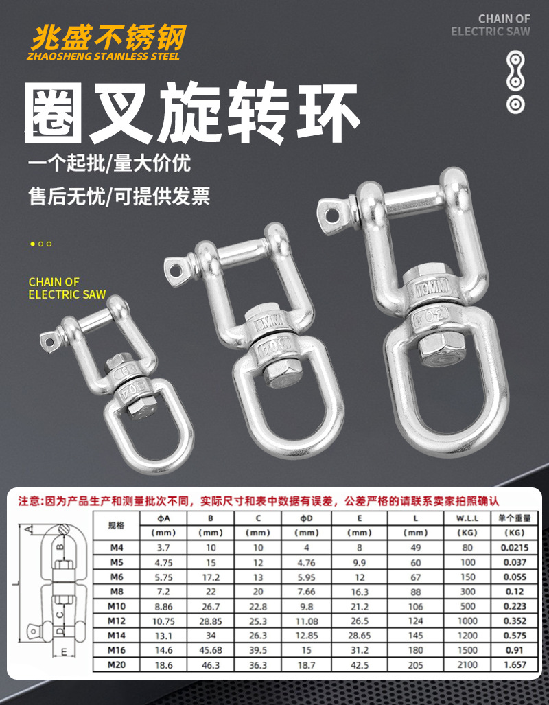 304ステンレス回転リングOO型オックス形XX型8字リングユニバーサル回転バックルM4M5M6M8M10-M32