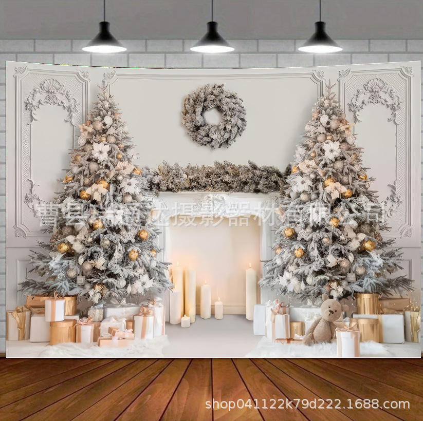 外贸摄影背景布壁炉圣诞节派对场景亚马逊货源圣诞布置圣诞树挂毯