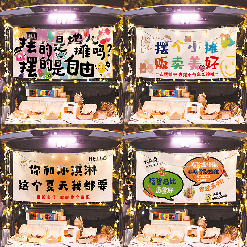 新款摆摊条幅横幅手持挂毯挂画后备箱挂布布置装饰派对氛围背景布