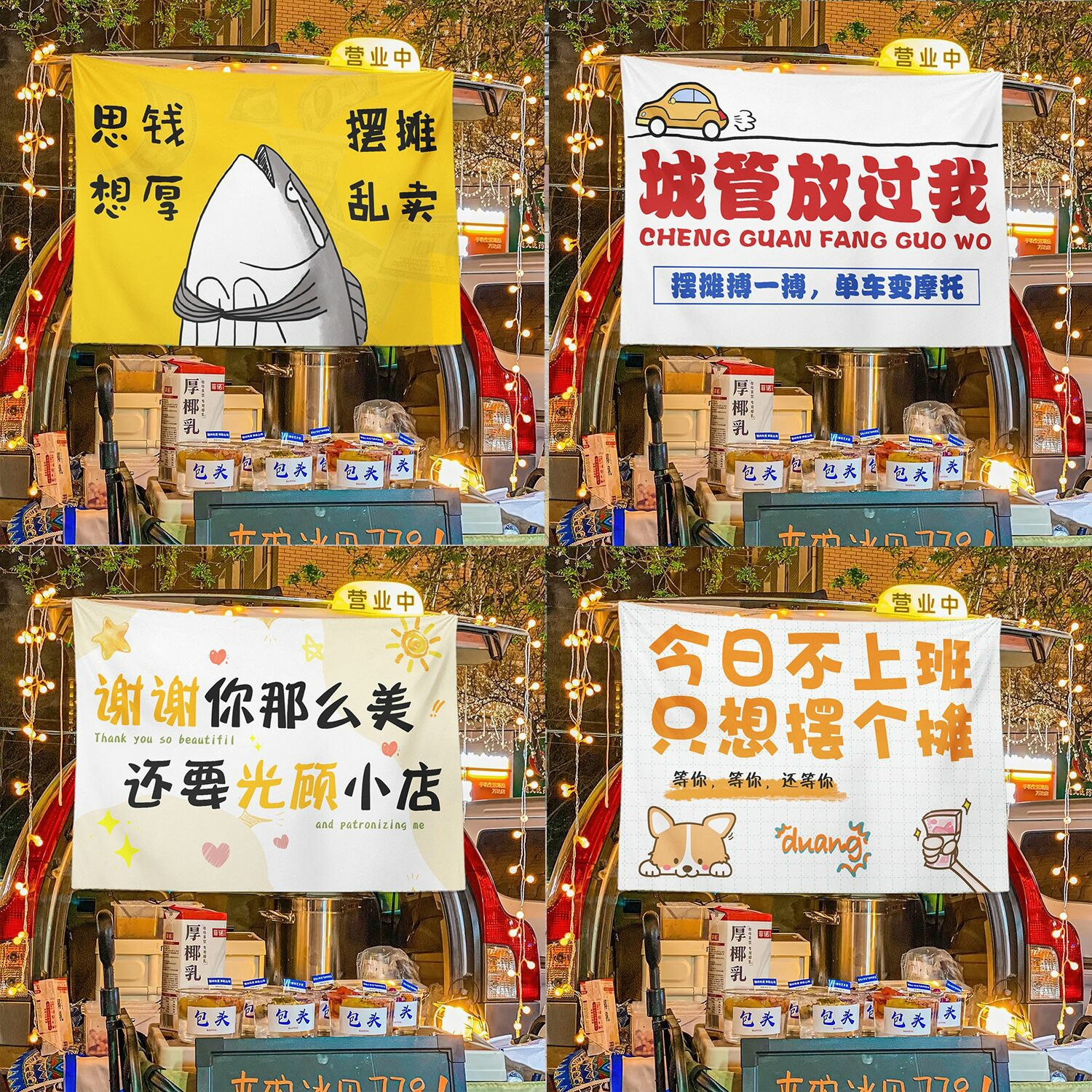 后备箱咖啡摆摊挂布街边集市招牌横幅布置夜市网红广告背景布