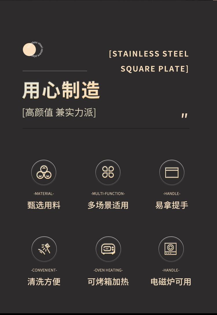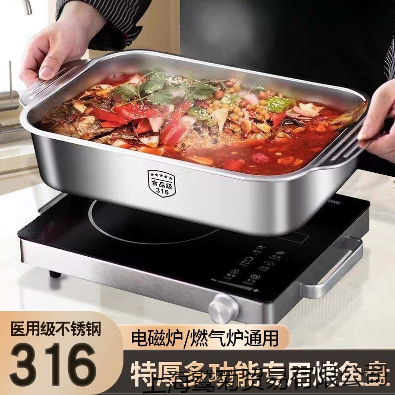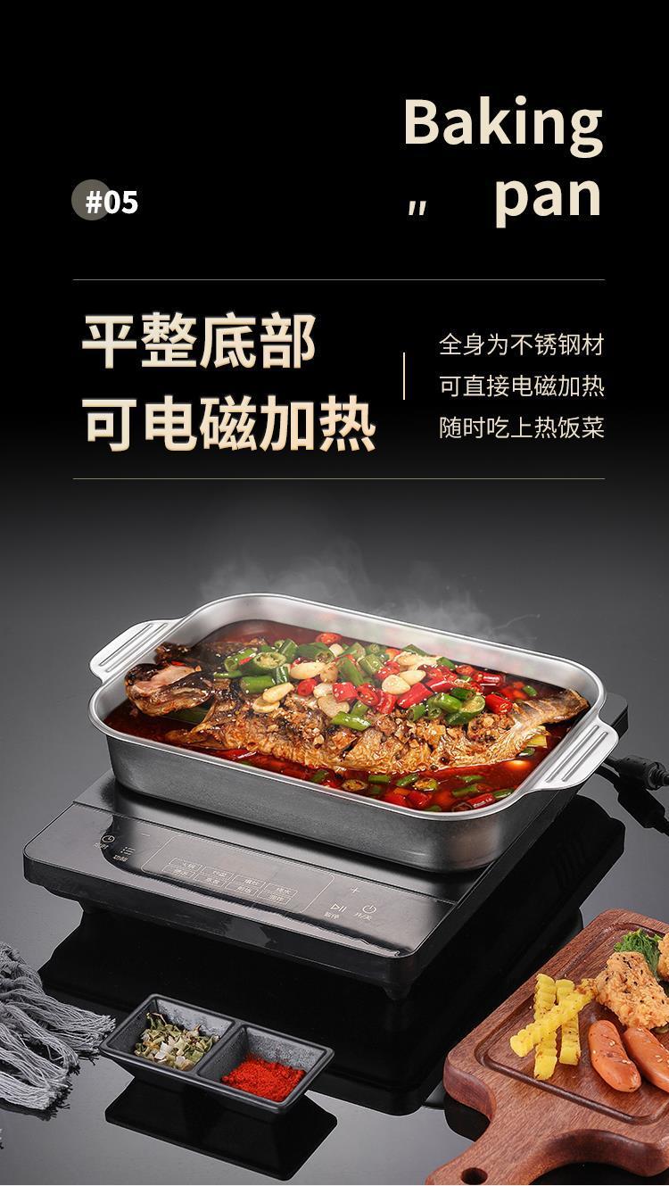 不锈钢特厚烤鱼盘方形电磁炉小龙虾烤肉盘专用烧烤盘夜市火锅商用