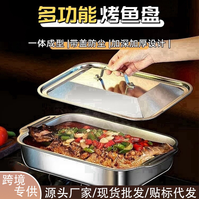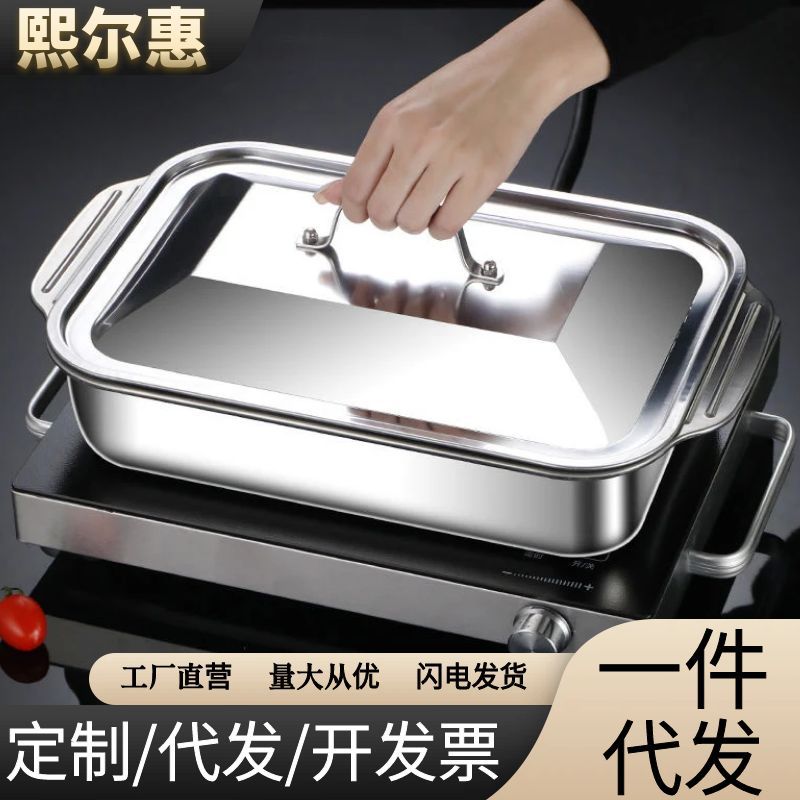 蓋付きステンレス焼き魚皿長方形深皿家庭用電磁ストーブ専用鍋商用焼肉皿トレイ角皿