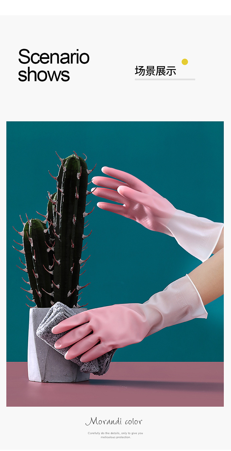 渐变色防水乳胶清洁手套女洗衣服家务手套洗碗手套防滑防水耐用型