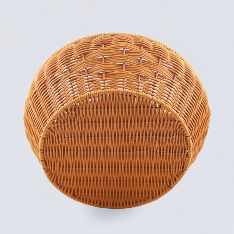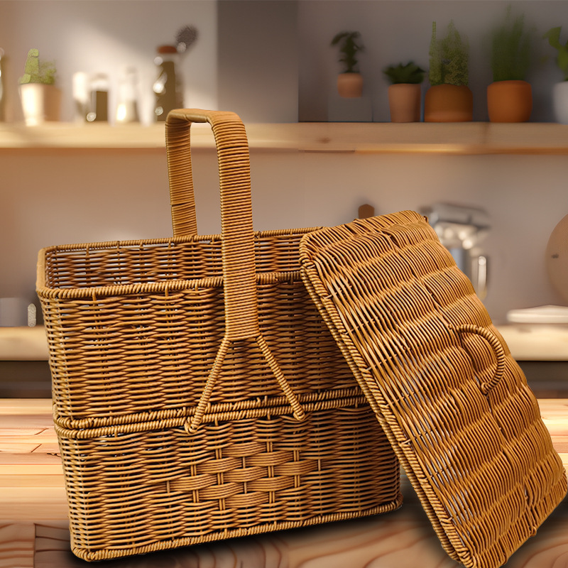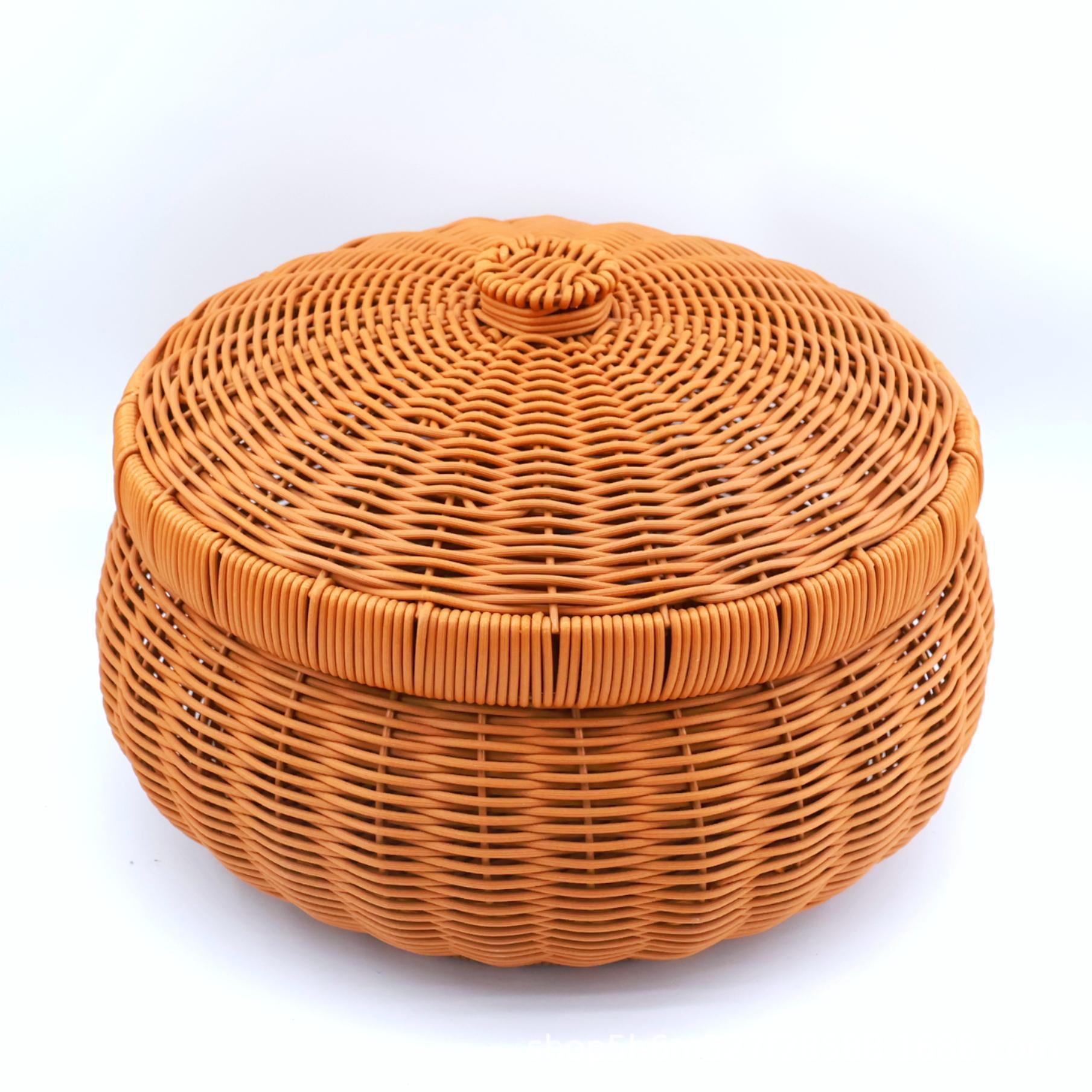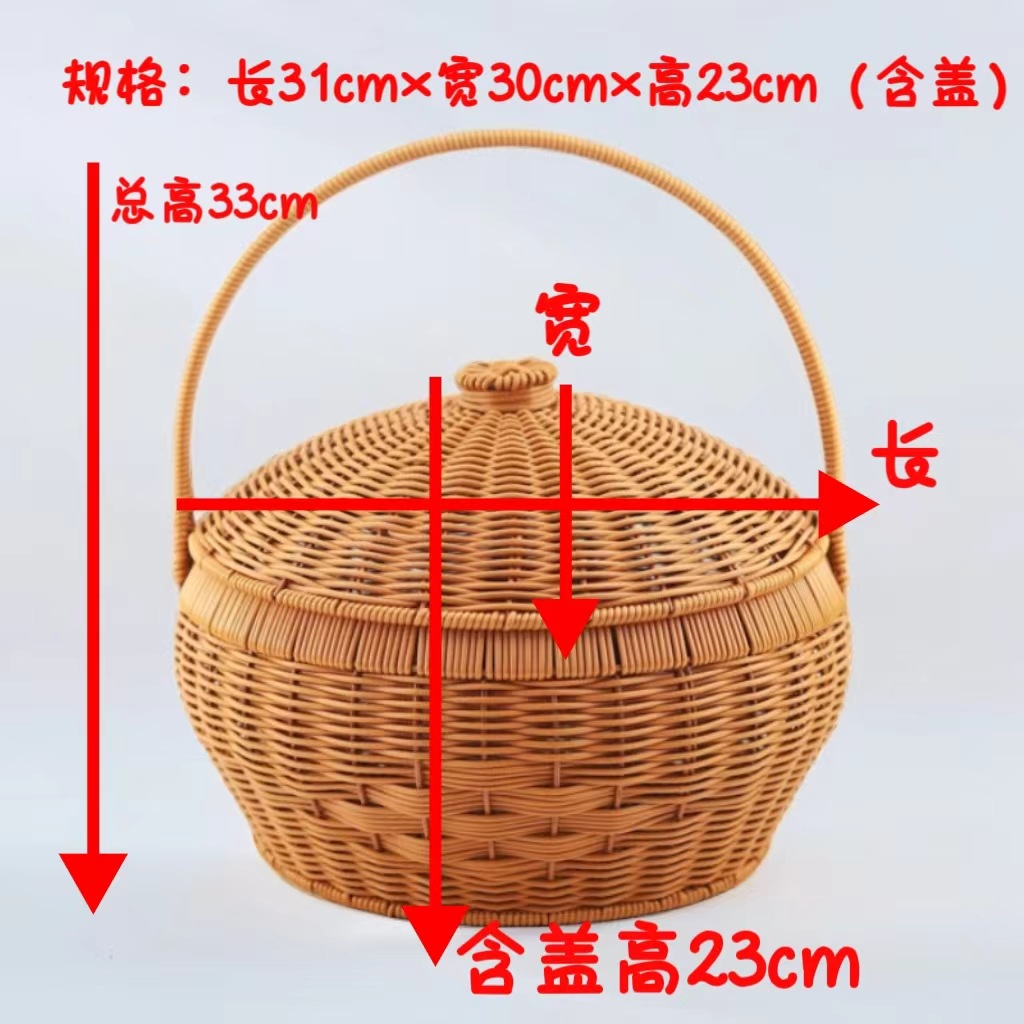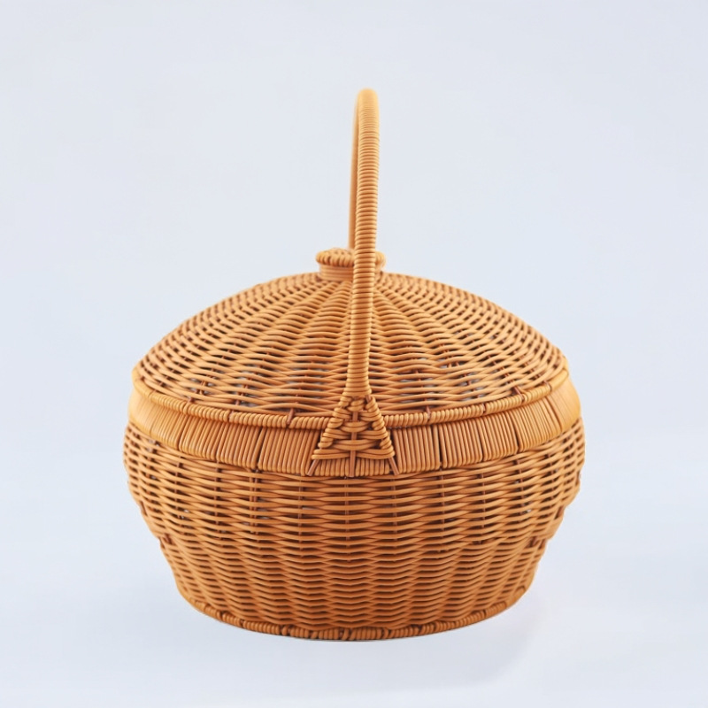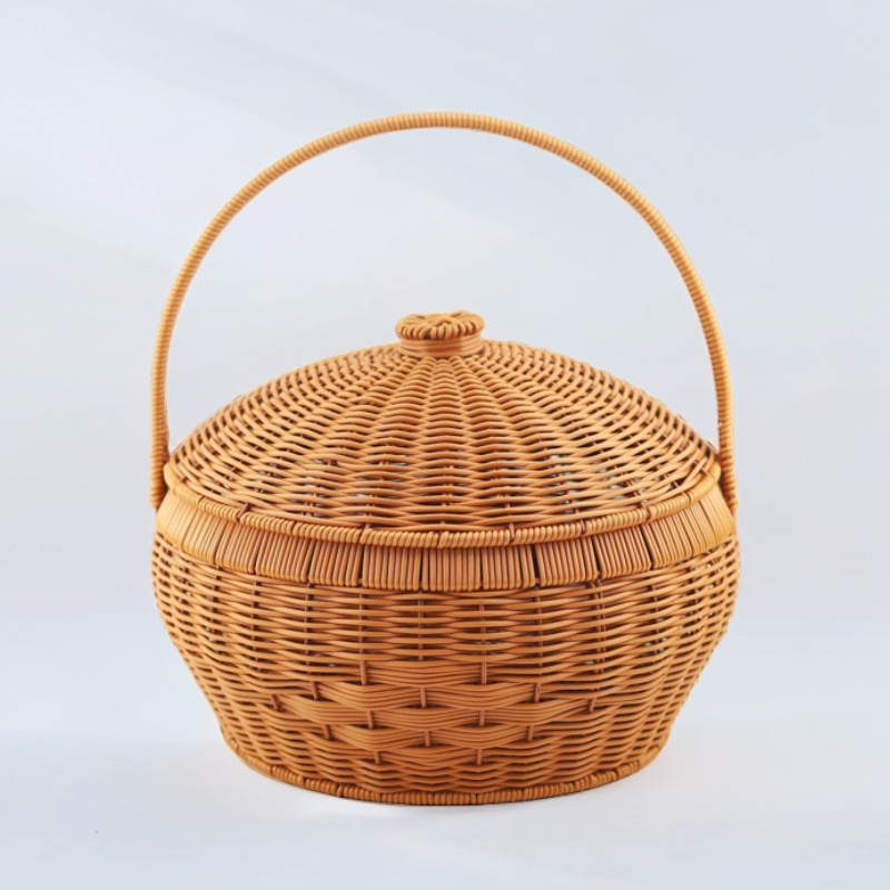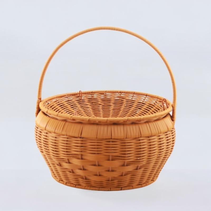 蓋付きラウンドポータブル手作りピクニック屋外バスケット模造籐織りお別れバスケット家庭用食料品の買い物と米箱
