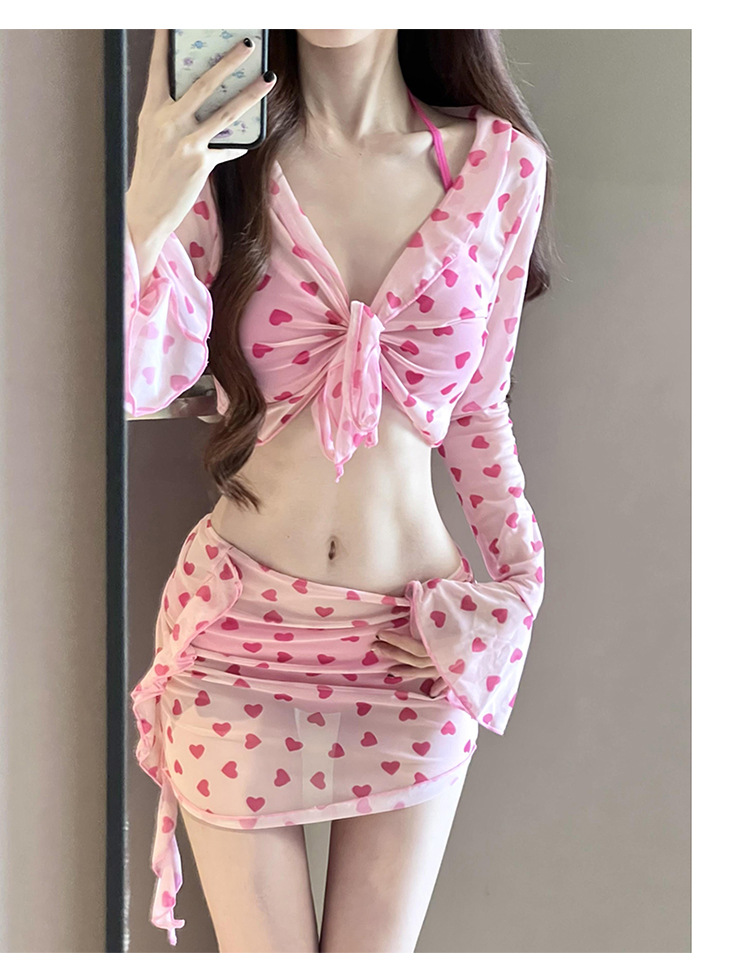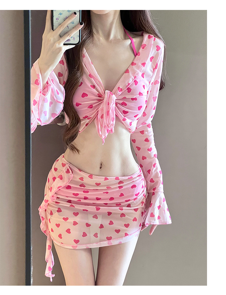 2024新作夏ピンク少女四点セット水着女性分体誘拐スカート式温泉リゾートビキニ純欲
