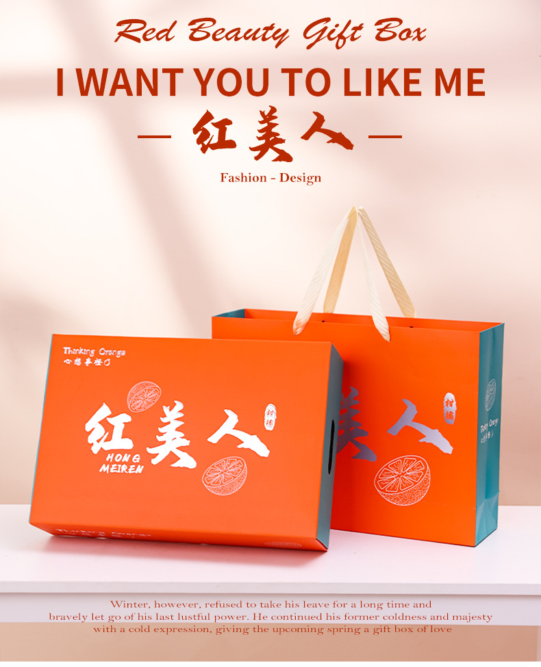象山紅美人礼箱空箱高級箔押し通用福建雲南柑橘手提げギフトボックス