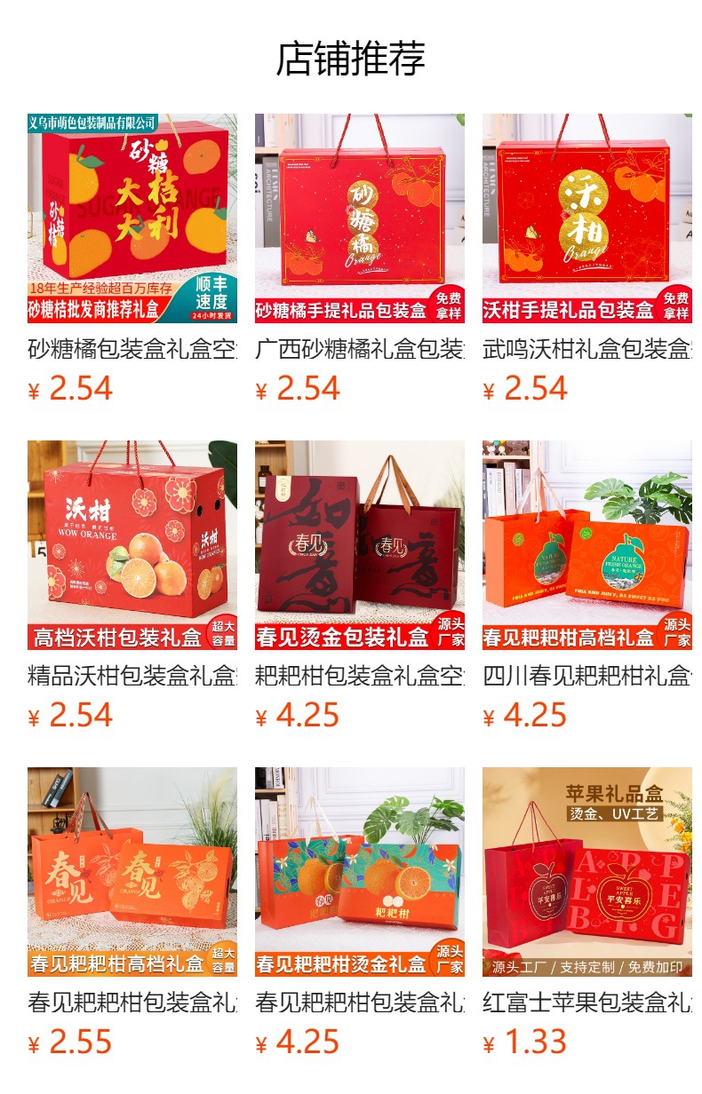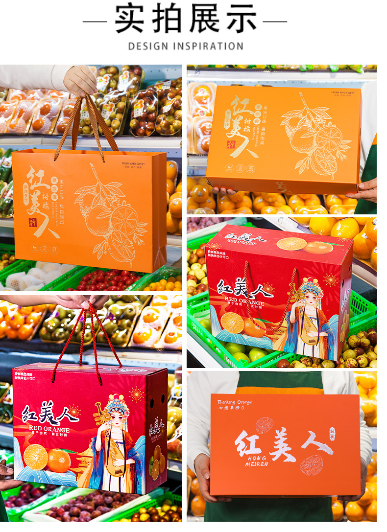 浙江象山紅美人礼箱空箱箔押し技術通用柑橘手提げ包装箱ギフトボックス卸売り