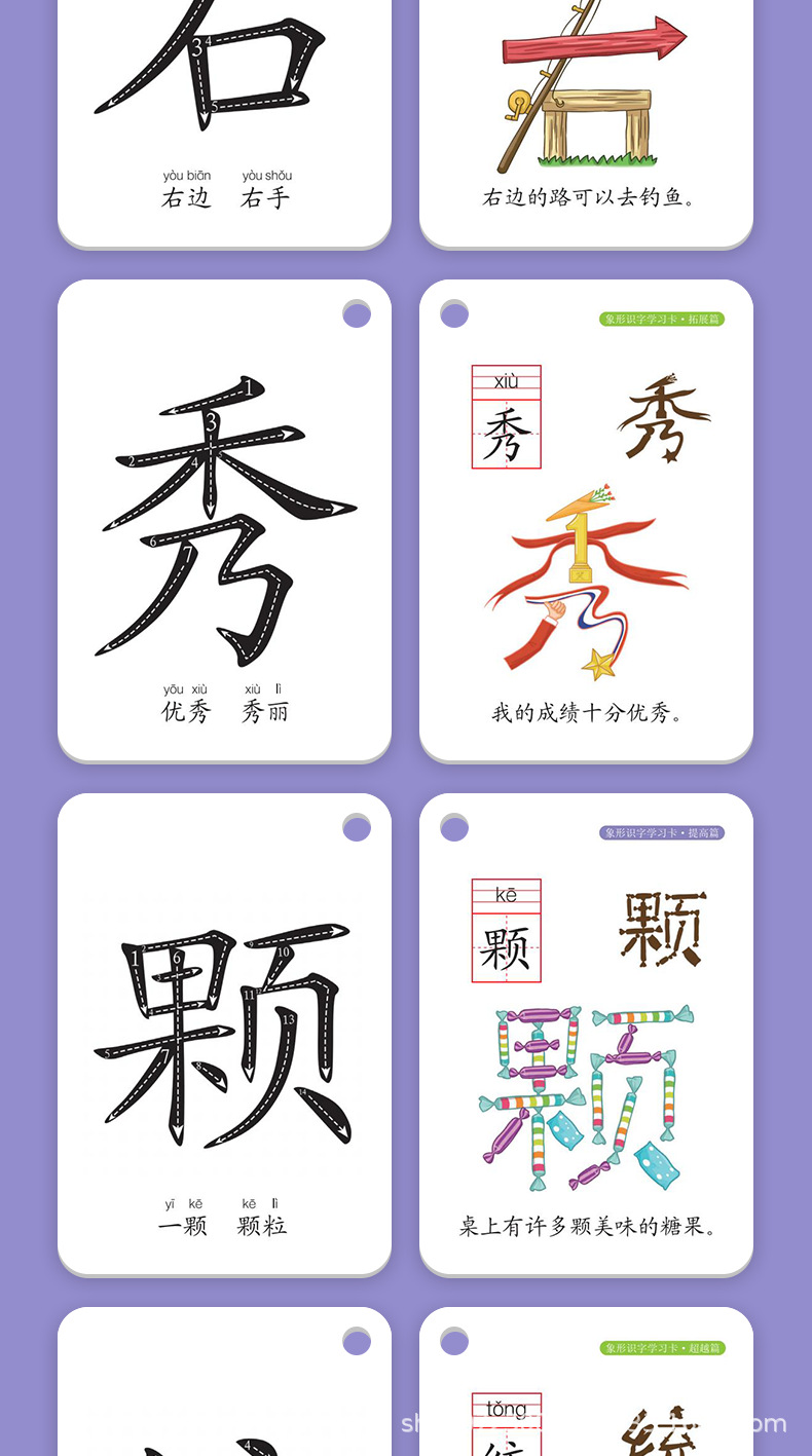 カラー 象形識字学習カード【基礎編】,象形識字学習カード【高級編】,象形識字学習カード【向上編】,象形識字学習カード【開拓編】,象形識字学習カード【超編】