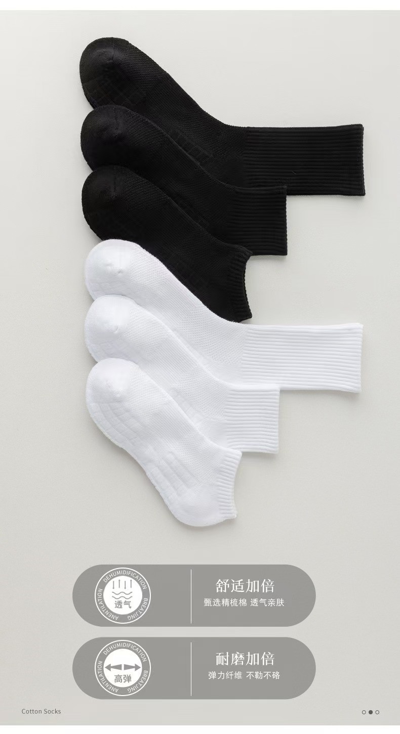 新疆長繊維綿白黒グレー靴下、秋冬用通気性吸汗防臭綿靴下、男女兼用ショート・ミディアム・ロング丈靴下