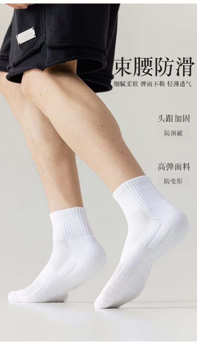 男性用タオル底スポーツソックス白ストッキング男性マッサージ毛輪底男性用靴下通気性中筒バスケットボールソックス