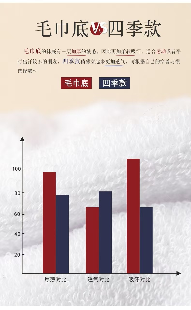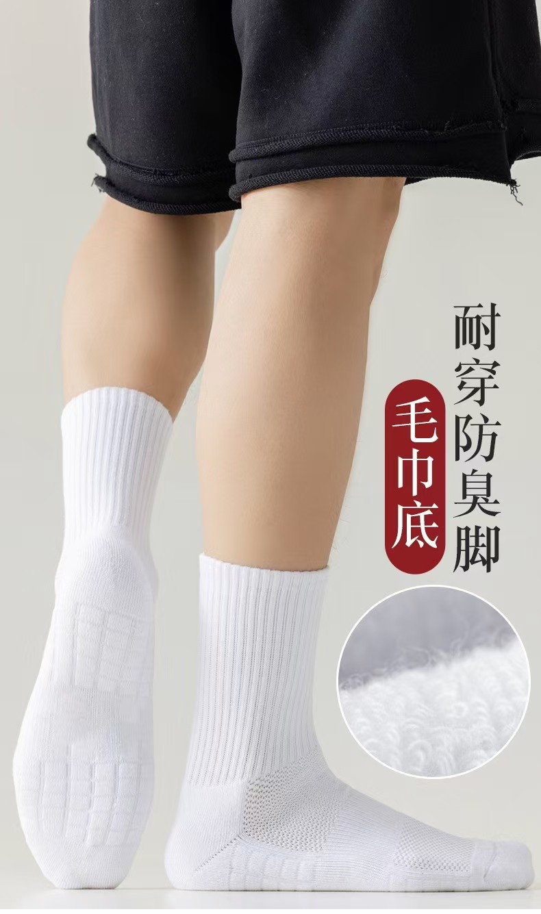 袜子纯棉毛巾底白色春秋款中筒纯棉吸汗防滑加厚男士长筒运动袜防
