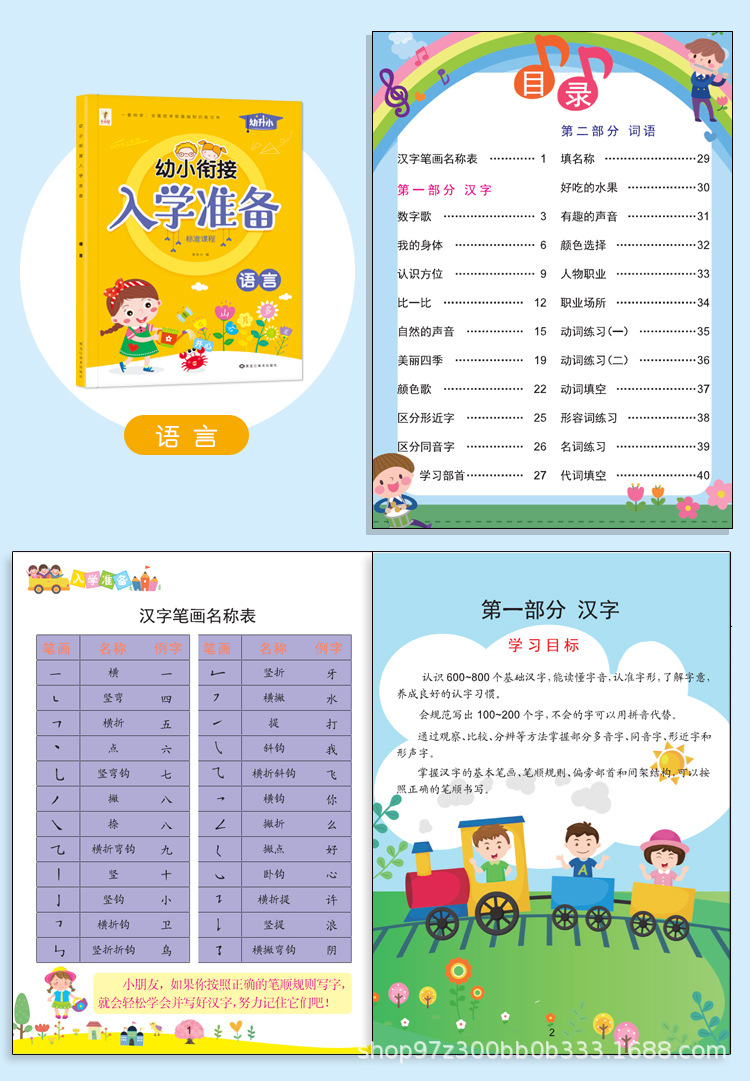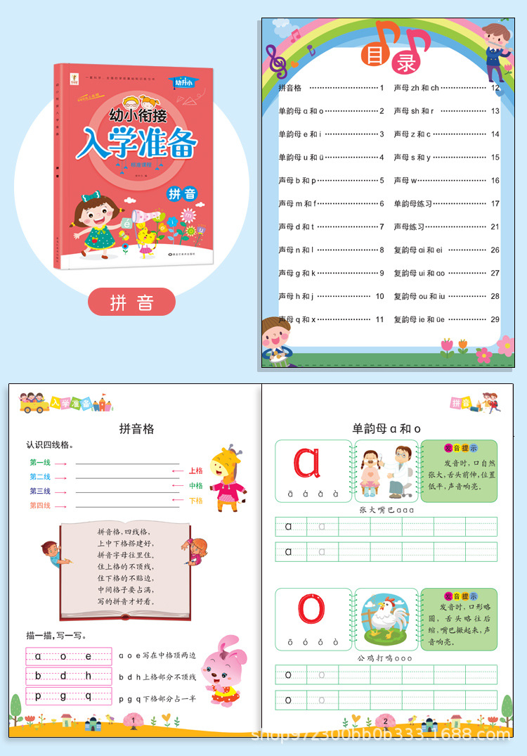 学前優学全方案A B上巻入学準備課程国語数学ピンイン図を見て話す