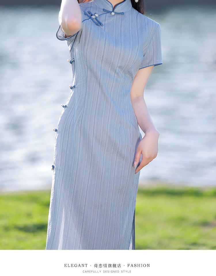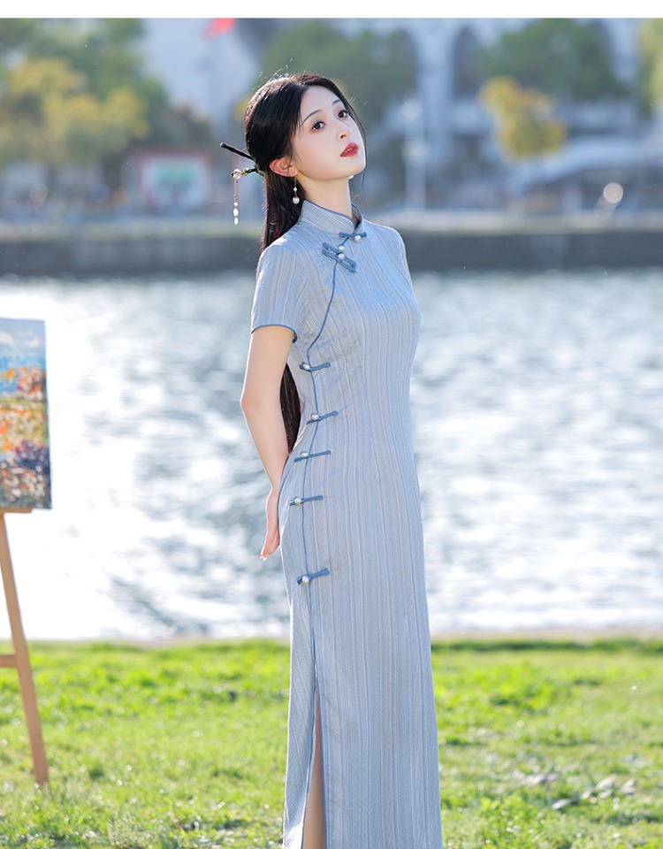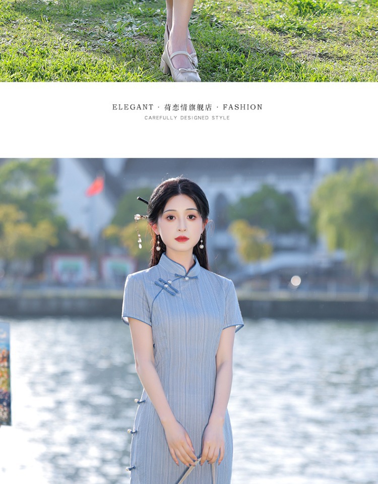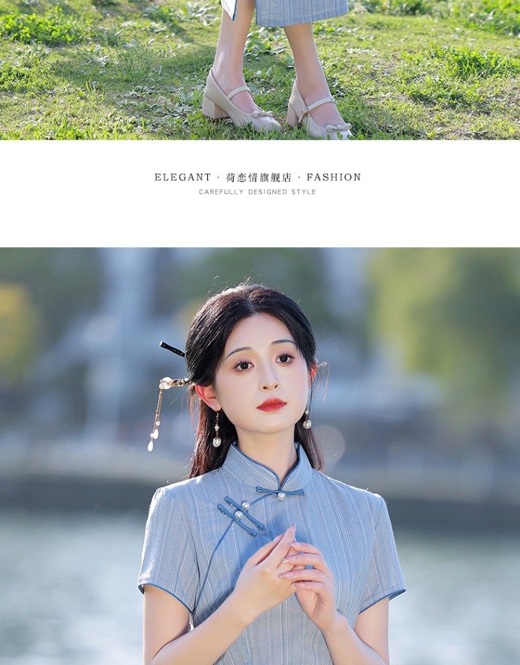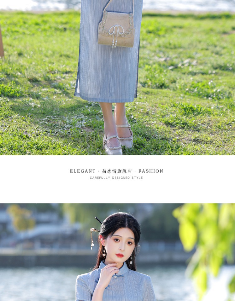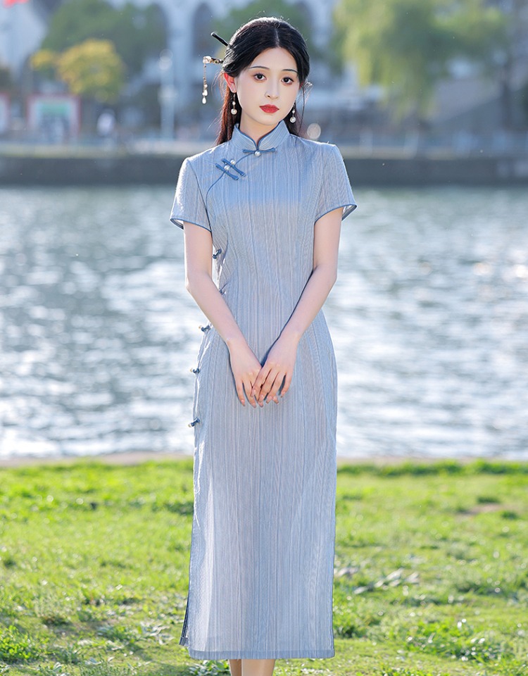 2024年夏新中国式改良チャイナドレス復古国風文芸優雅日常ワンピース