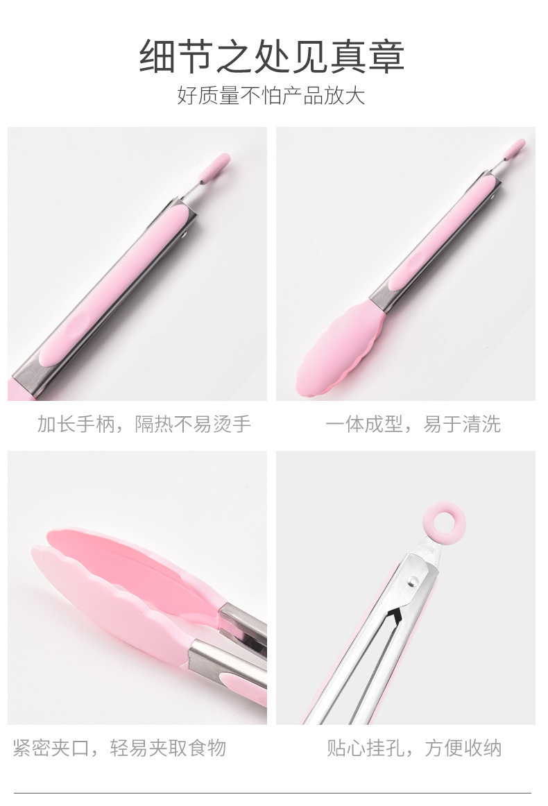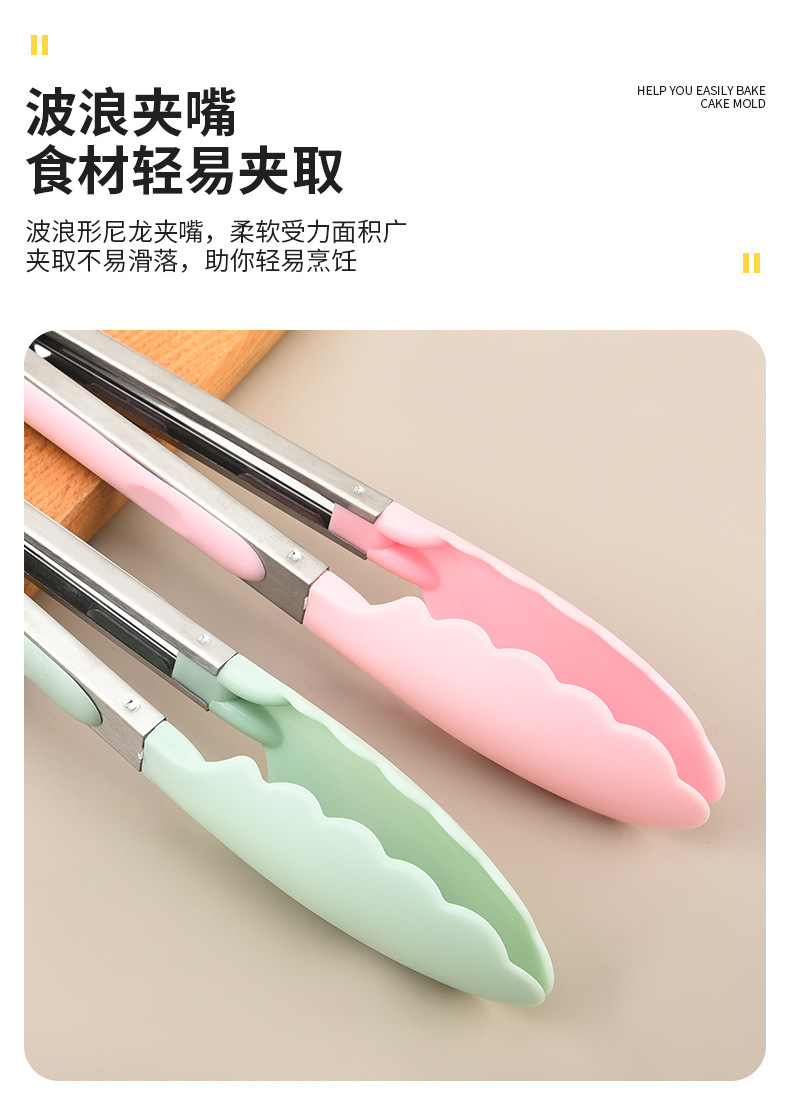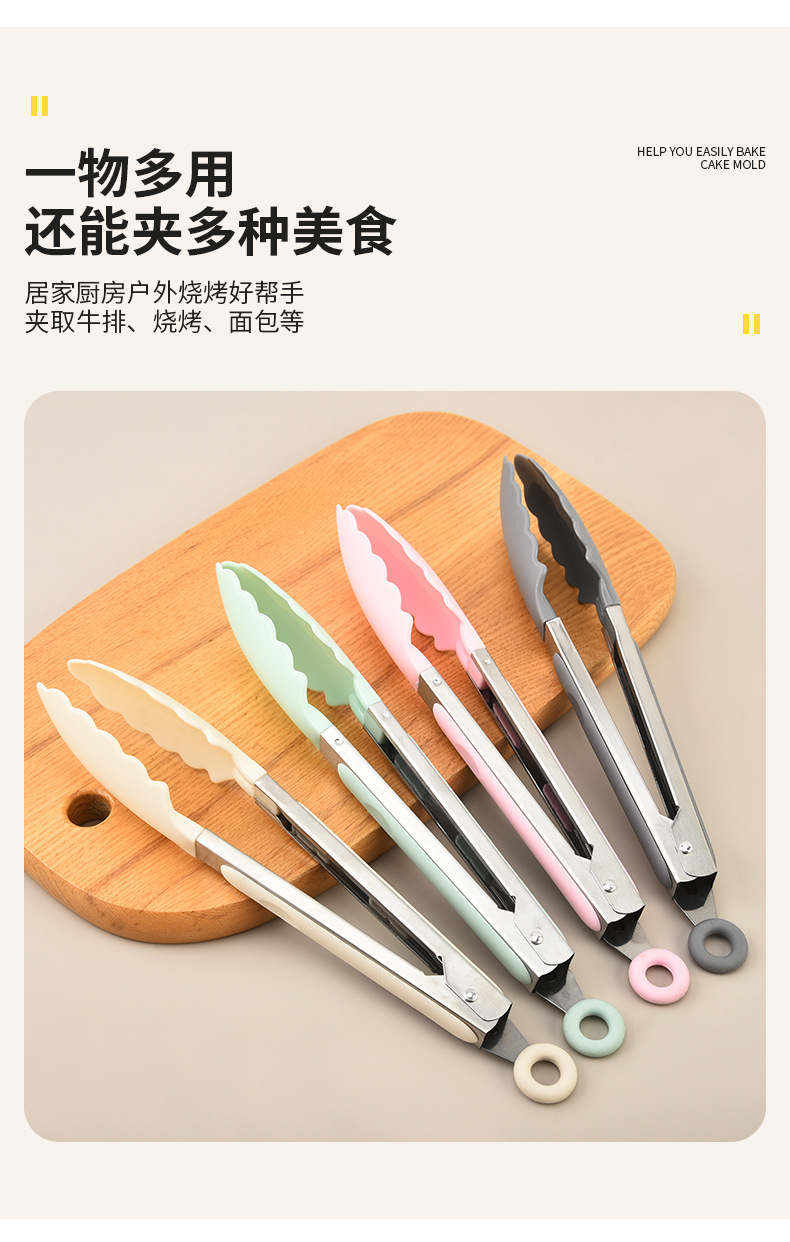 批发硅胶食物夹家用BBQ烤肉夹厨房牛排面包烘焙夹安全食品级夹具