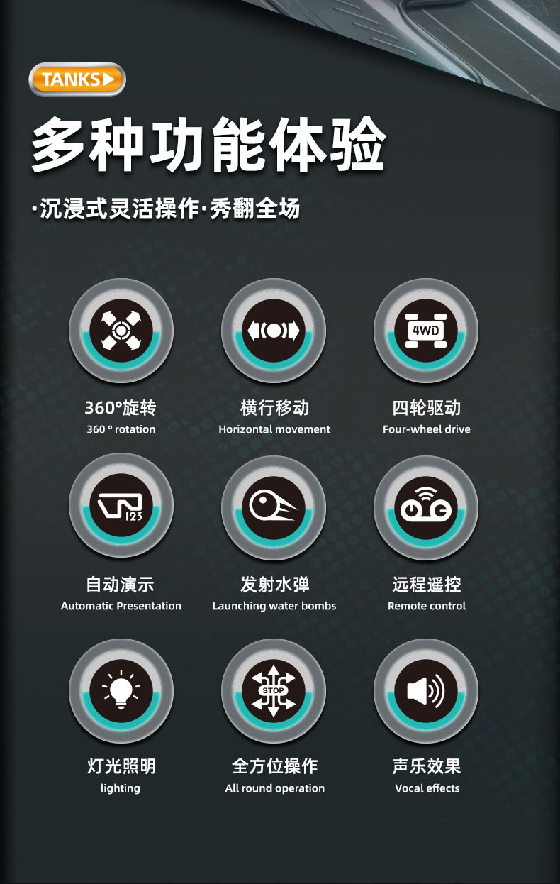 注目の機能 水爆弾を発射し、干渉することなくドリフトし、360度回転します。