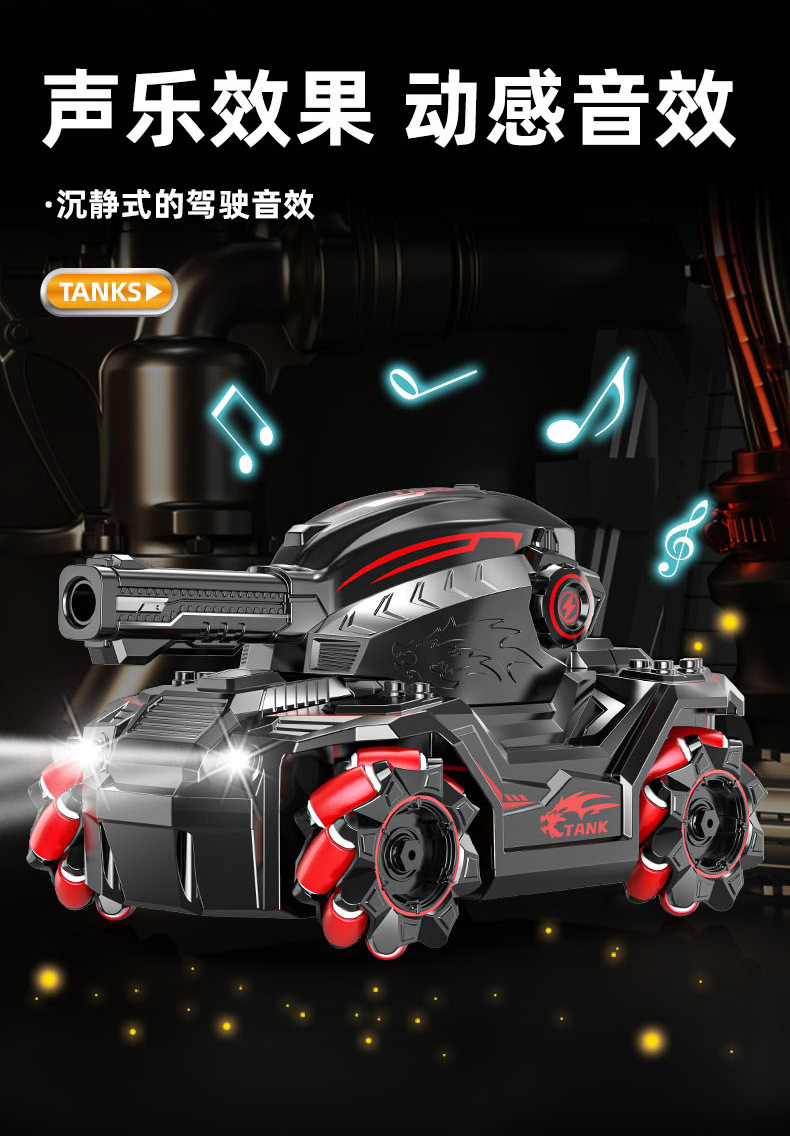 儿童六轮特技坦克遥控可发射水弹可充电灯光音乐手势感应男孩玩具