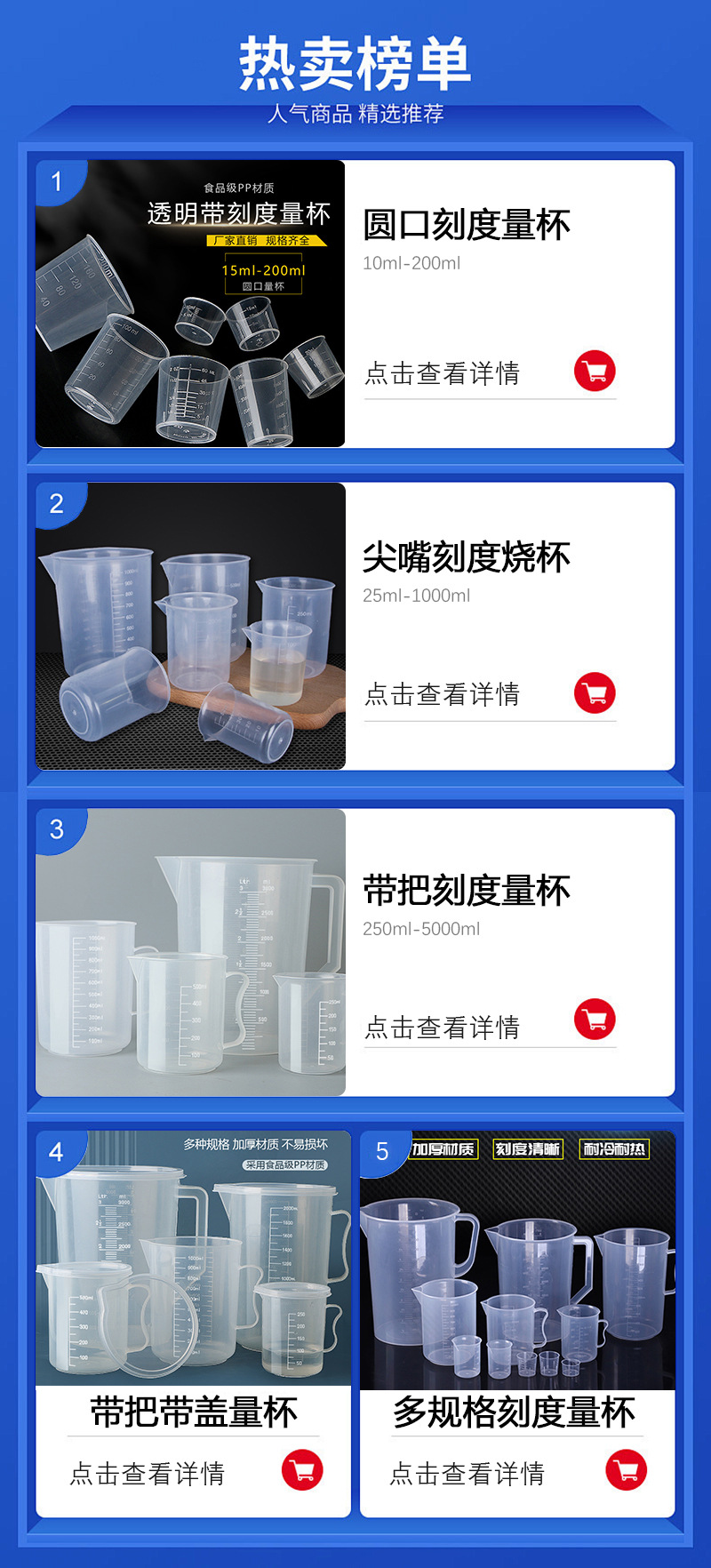 卸売プラスチック計量カップ100ml 200ml 250ml計量カップ500mlプラスチックスケール計量カップ1000mlビーカー