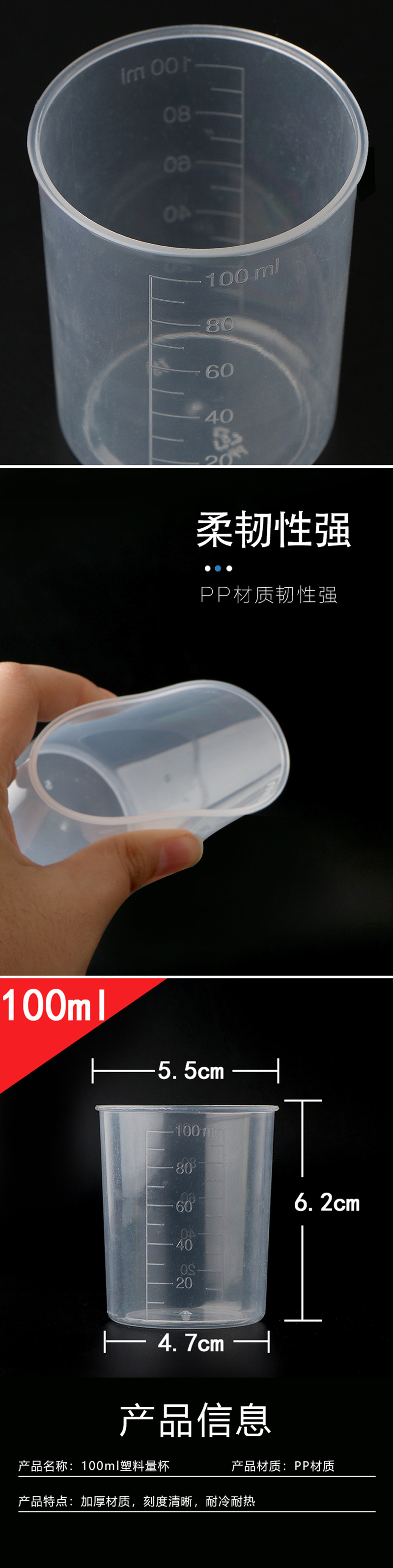 スポット卸売り100ml計量カップミリリットルプラスチック計量カップ新pp材料厚さ少量計量カップスケール付きビーカー