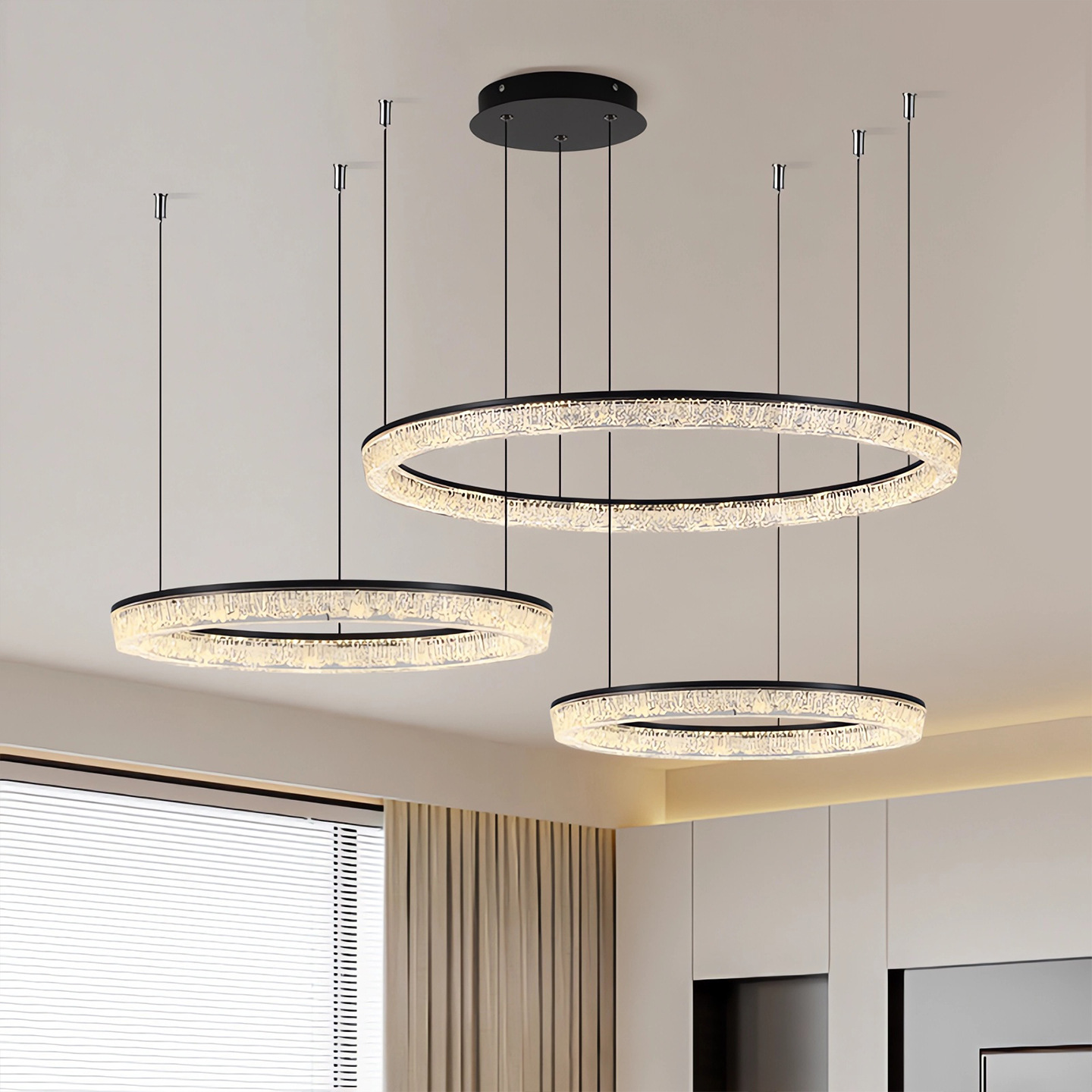 意式极简客厅吊灯高端轻奢新款全光谱护眼大厅餐厅灯中山灯具002L