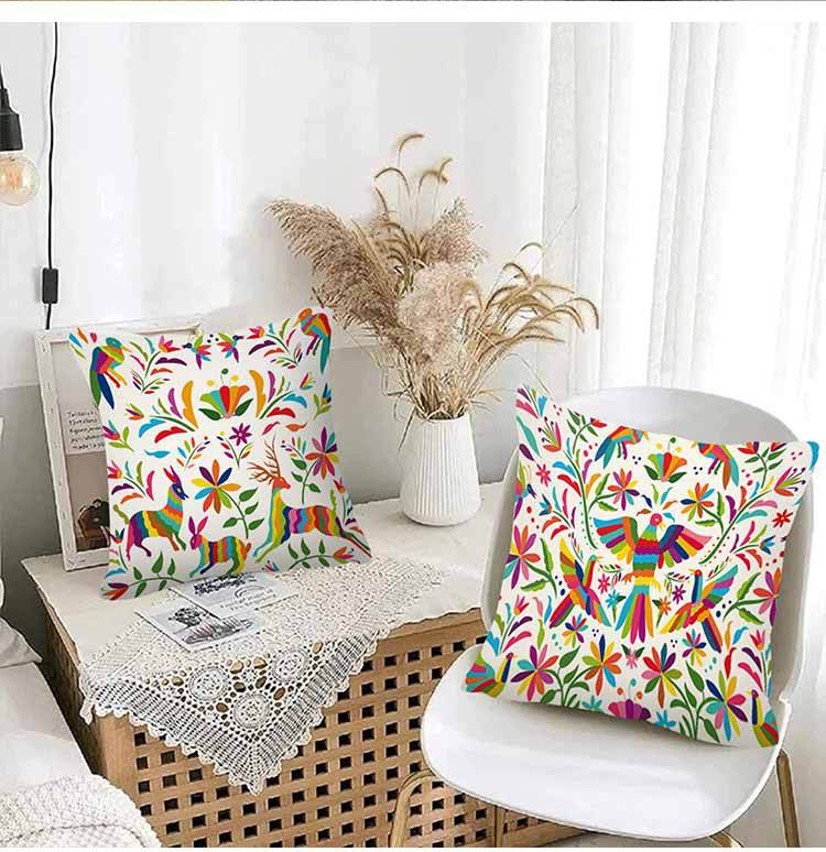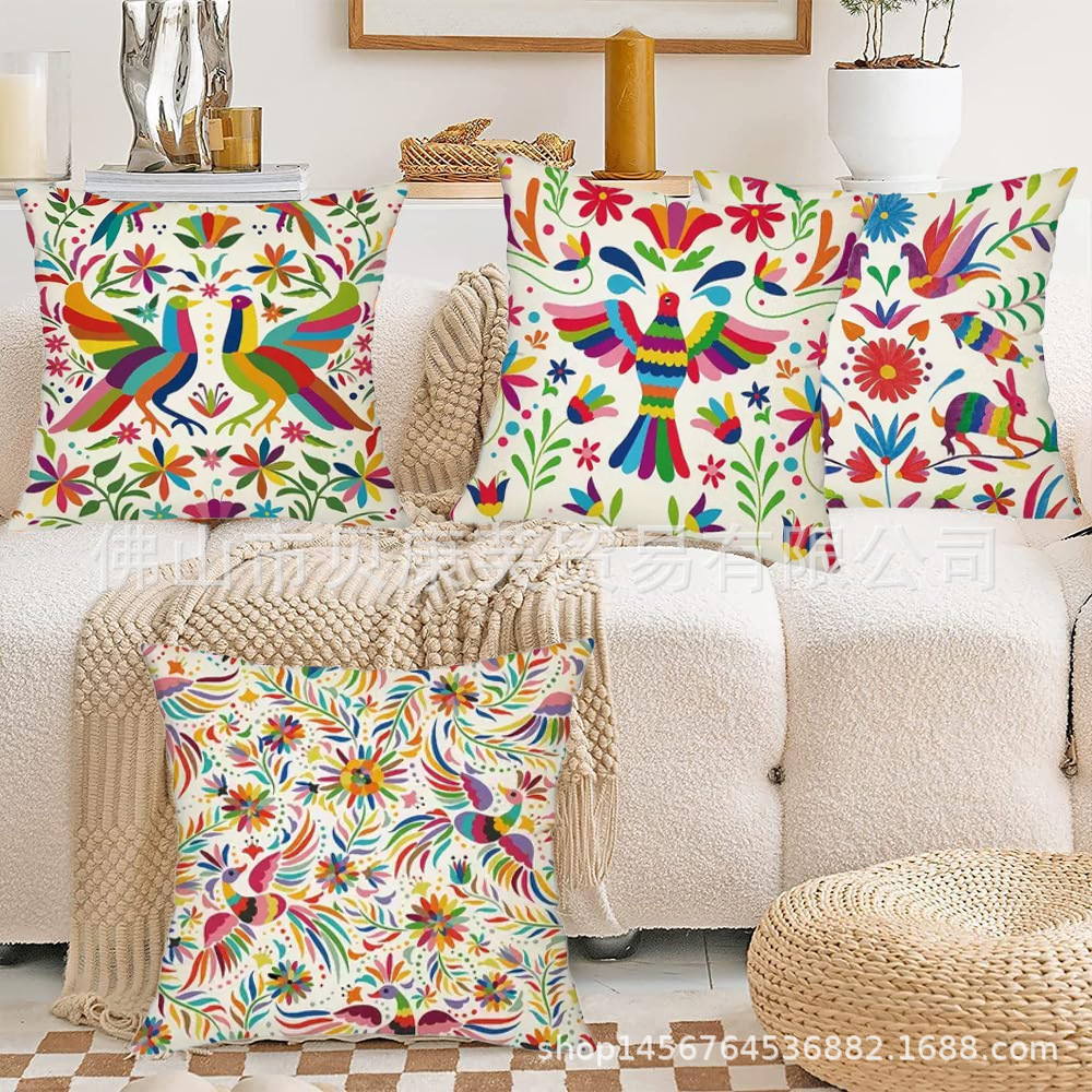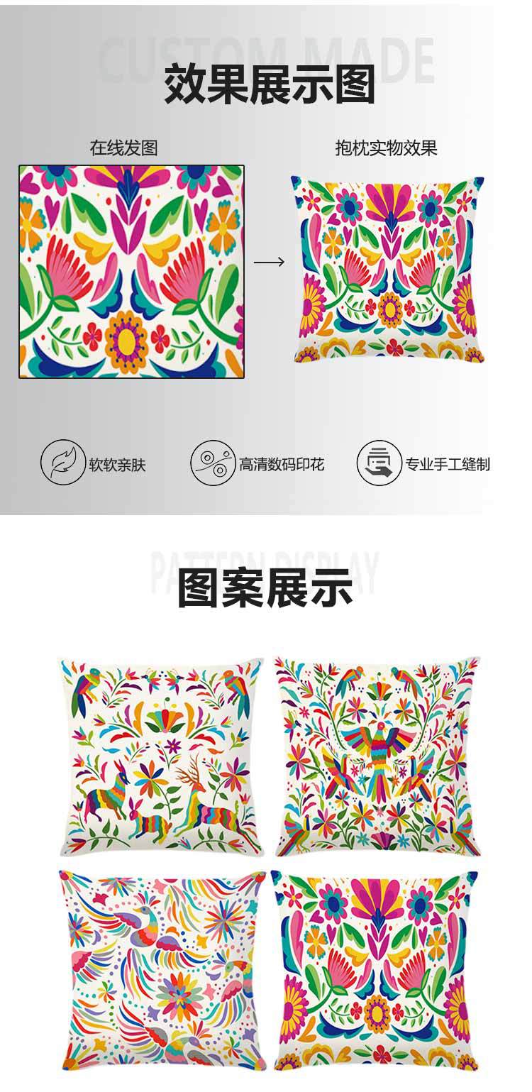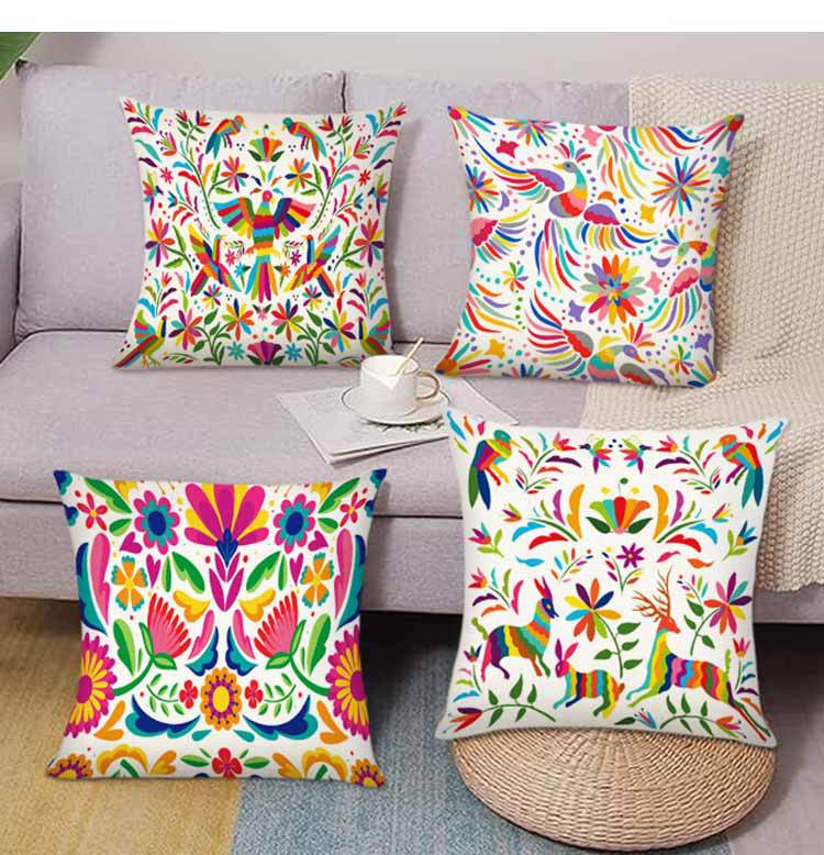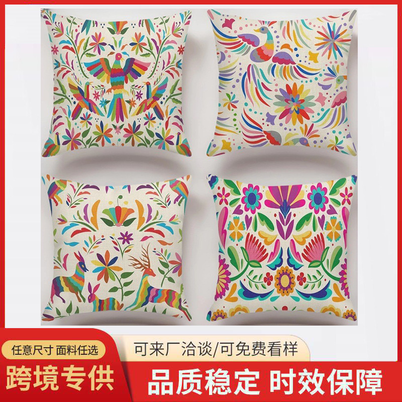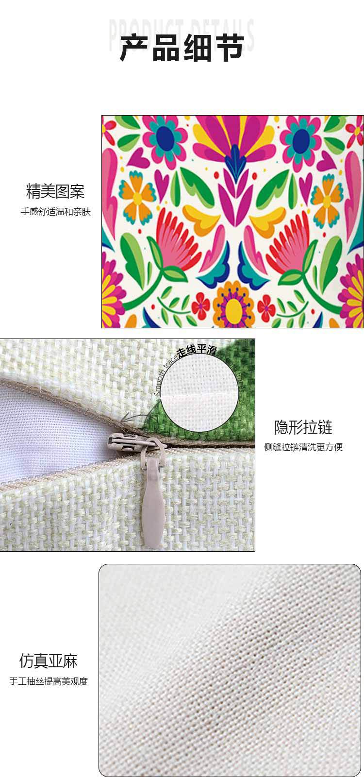 メキシコ風抱き枕カバー新型亜麻亡霊花カラープリント家庭客間ソファー装飾枕カバー