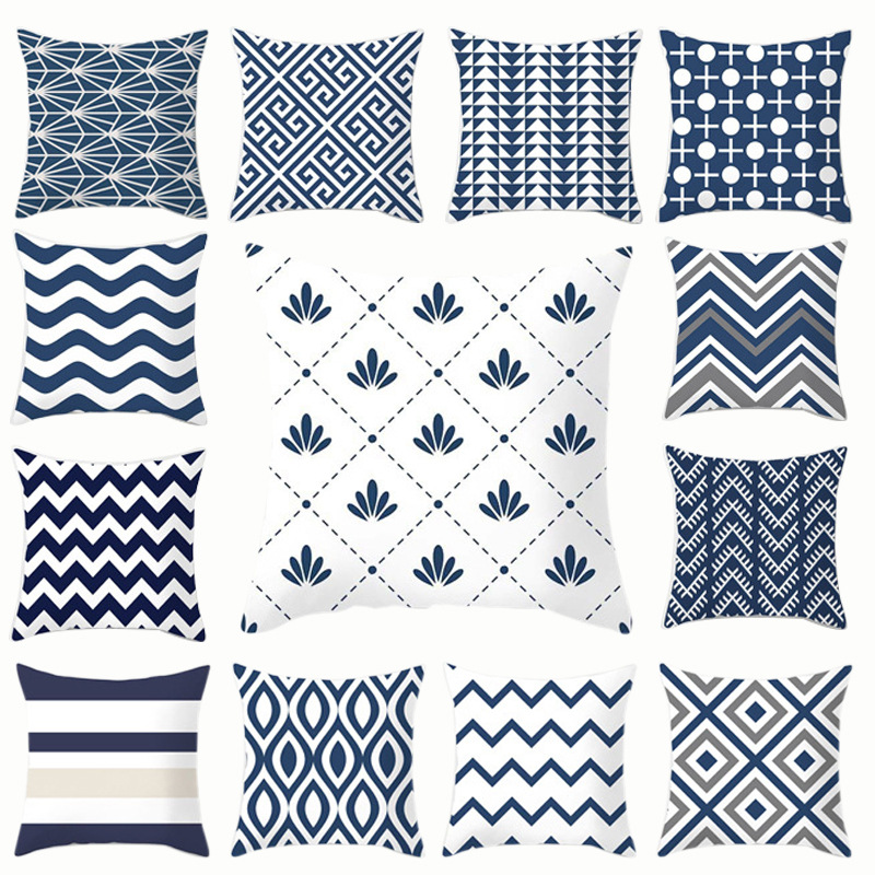 ブルー幾何学的なピーチスキン枕カバーオフィスソファホームインテリアベッドサイド装飾枕カバーモダンでシンプル