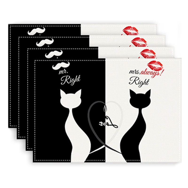 新しいバレンタインデーの白黒の猫の食事マットの祝日のパーティーのテーブルの装飾の断熱マットの家の台所のテーブルのマットのコースター