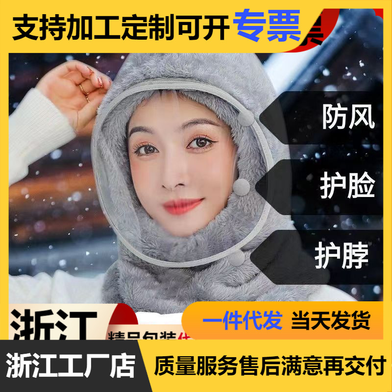 围脖一体帽子女冬季防寒防风面罩可拆卸镜片加厚护脖骑车保暖神器