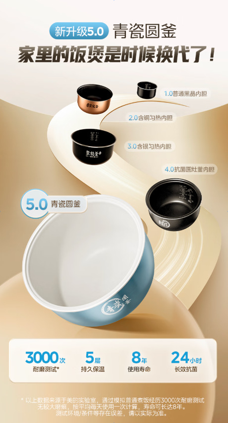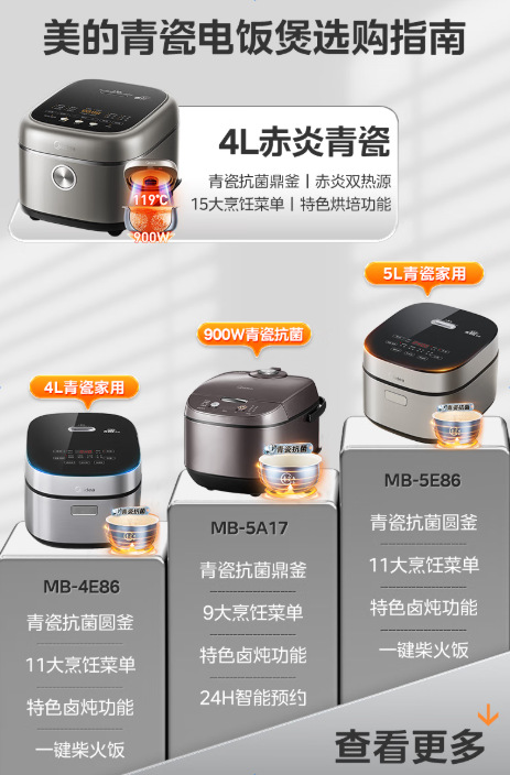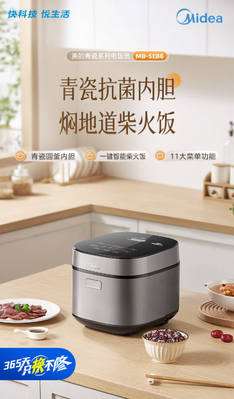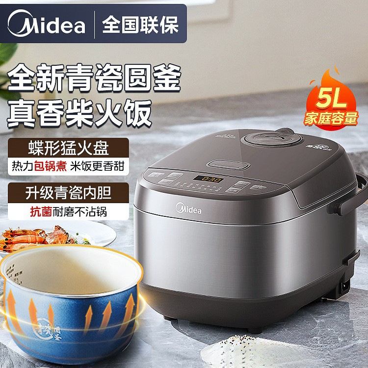 美的电饭煲家用5升大容量3-8人不粘青瓷陶瓷内胆多功能智能电饭锅