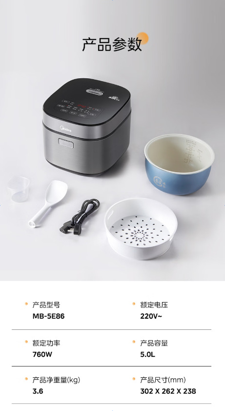 美的炊飯器 5L容量 緑磁内釜 特製煮込み 多機能家庭用スマート炊飯器 MB-5E86