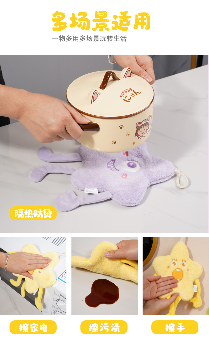 家用厨房猫咪手巾挂式手帕儿童珊瑚吸水抹布毛巾卫生间卡通擦手巾