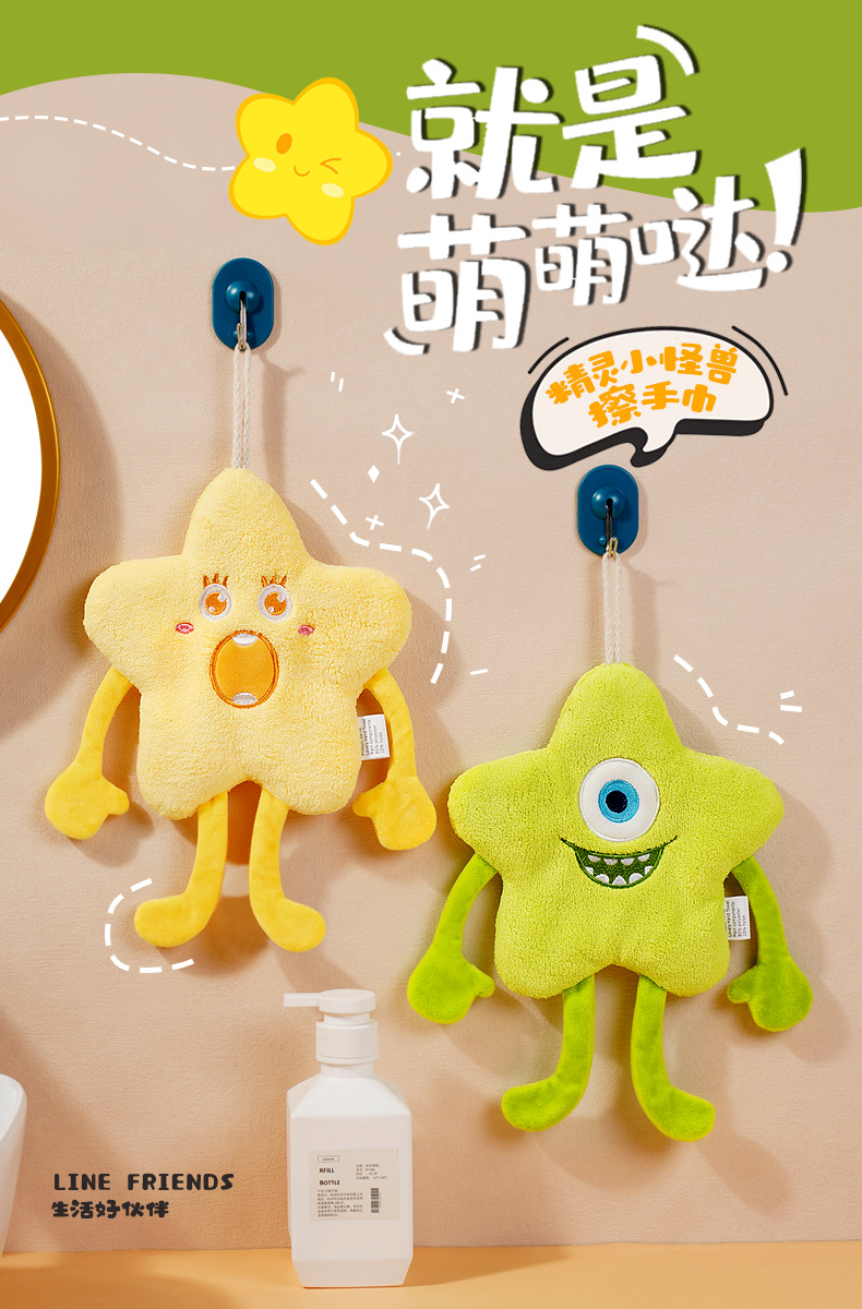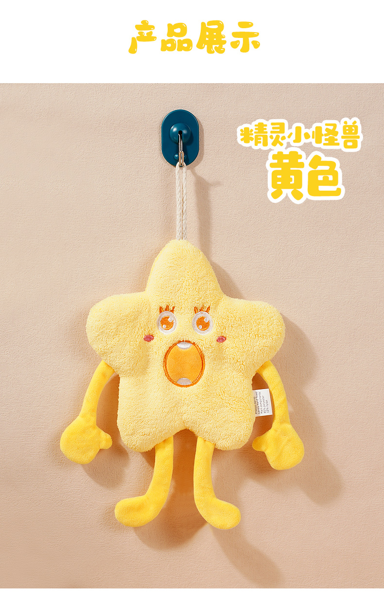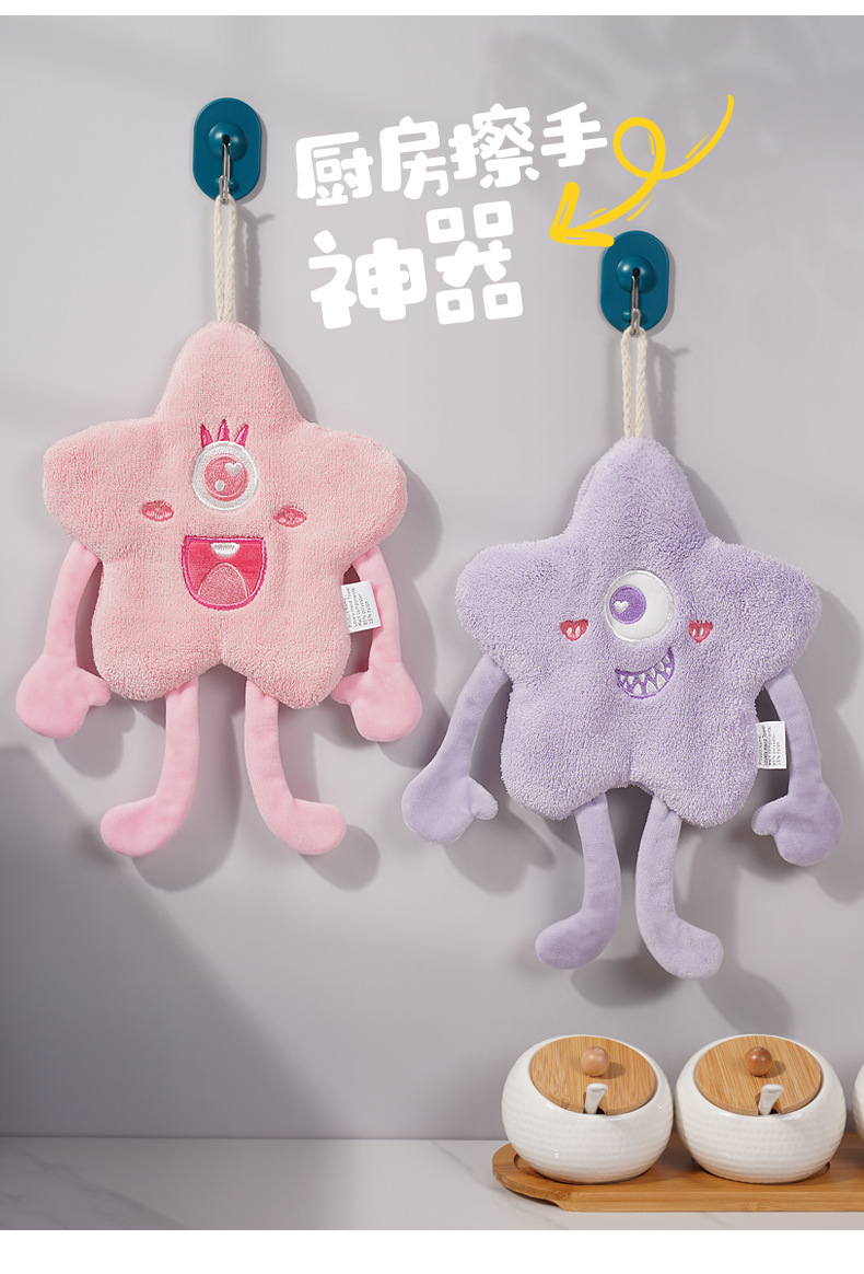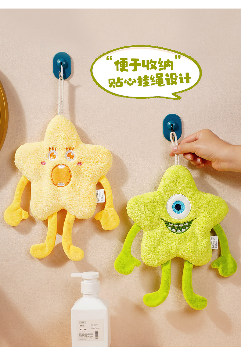 可爱丑鱼挂式擦手巾吸水卡通厨房儿童家用速干卫生间手帕毛巾GG英